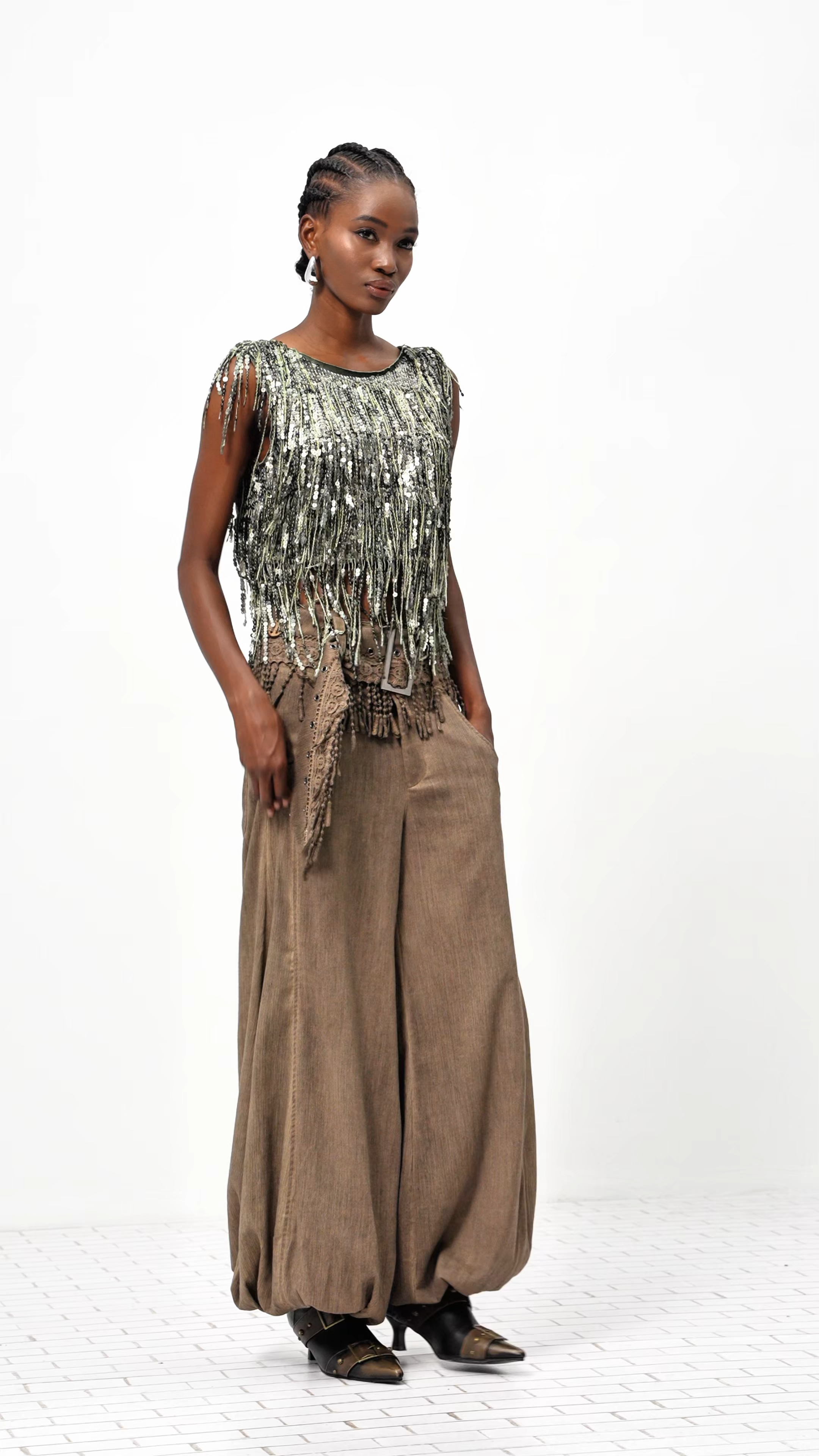 Elevate your style with the Ernar Sequin Chain Top, designed to shimmer with every movement. Featuring luxurious sequins and sophisticated chain detailing, this top offers a bold and modern statement for any special occasion.