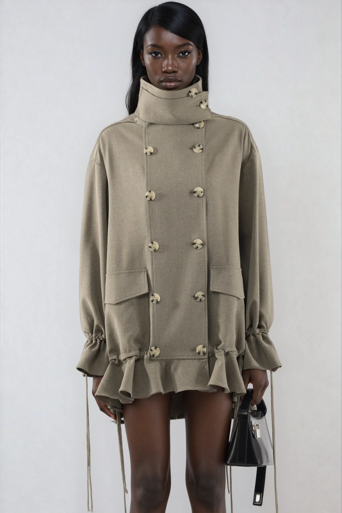 Don Funnel Neck Ruffle Mini Dress