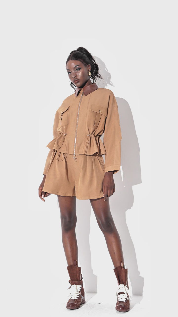 Aravinda Drawstring Ruch Ruffle Pants Set