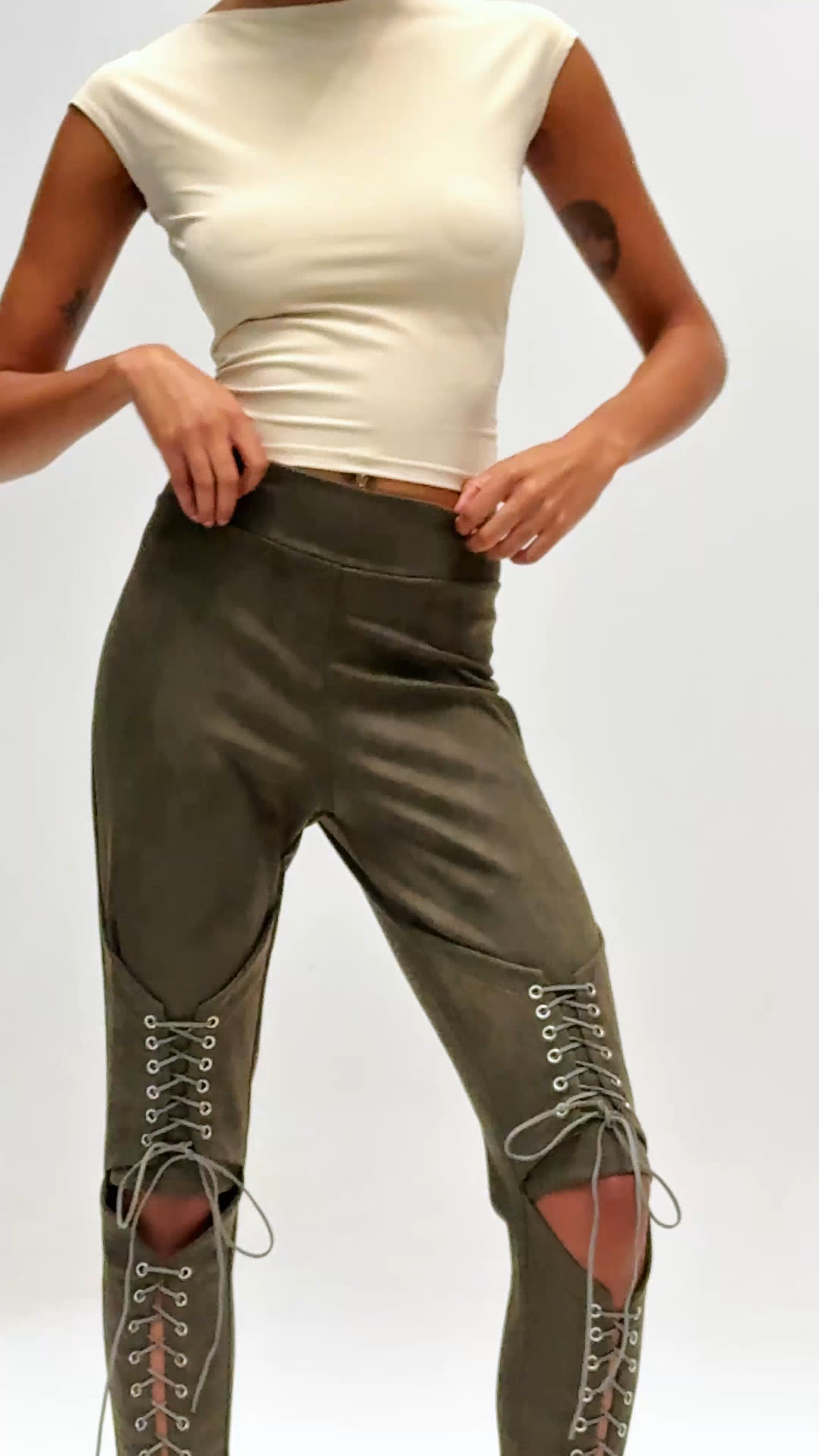 Benicio Suede Cutout Lace Up Bodycon Pants
