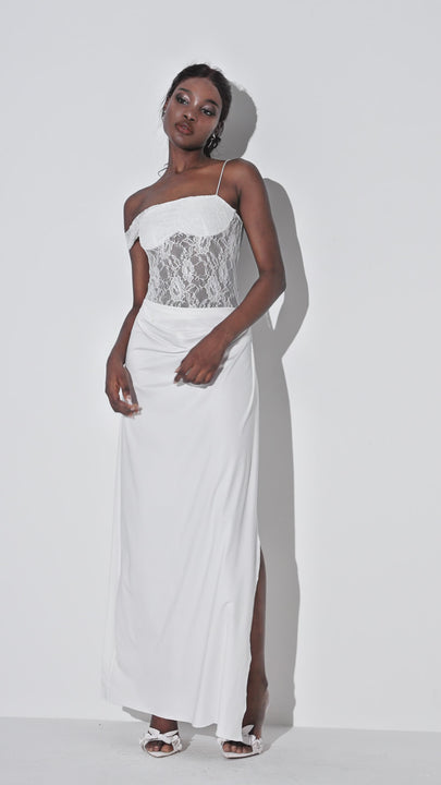 Elevate your wardrobe with the Chenda Lace Asymmetric Maxi Dress, expertly crafted to combine elegance and modern design. Featuring delicate lace detailing and a distinctive asymmetric hemline, this dress offers a sophisticated silhouette that flatters every figure. Perfect for formal occasions, its lightweight fabric ensures comfort while maintaining a refined look. The Chenda dress is a timeless piece that effortlessly blends classic charm with contemporary style.