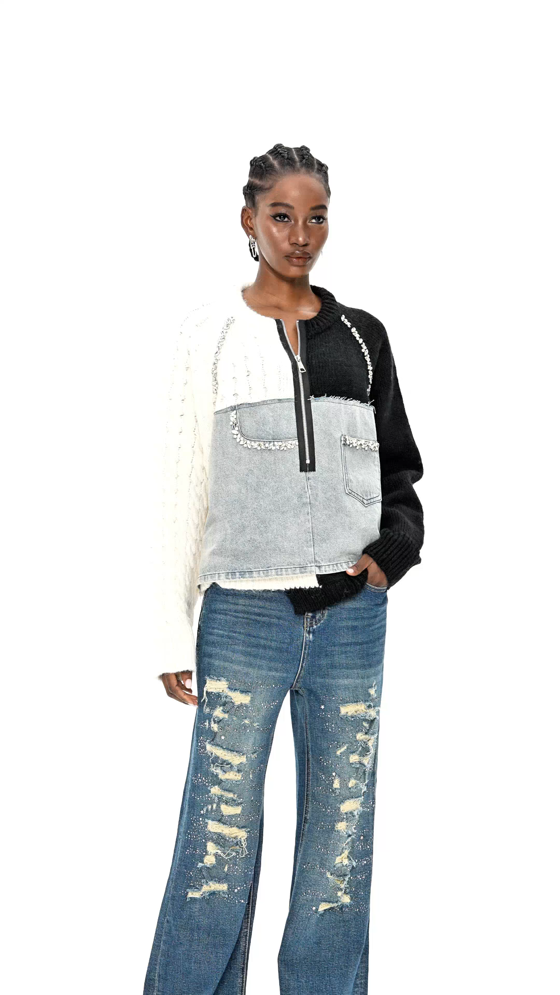 Elevate your wardrobe with the Csilla Deconstruct Crystal Jacket in Black, a masterful blend of edgy design and refined craftsmanship. This jacket features carefully deconstructed elements paired with subtle crystal embellishments, offering a modern yet sophisticated statement piece. Its tailored fit ensures a flattering silhouette, while high-quality materials provide durability and comfort. Perfect for those who appreciate innovative fashion with a polished finish, this jacket effortlessly enhances any ensemble with a touch of avant-garde elegance.