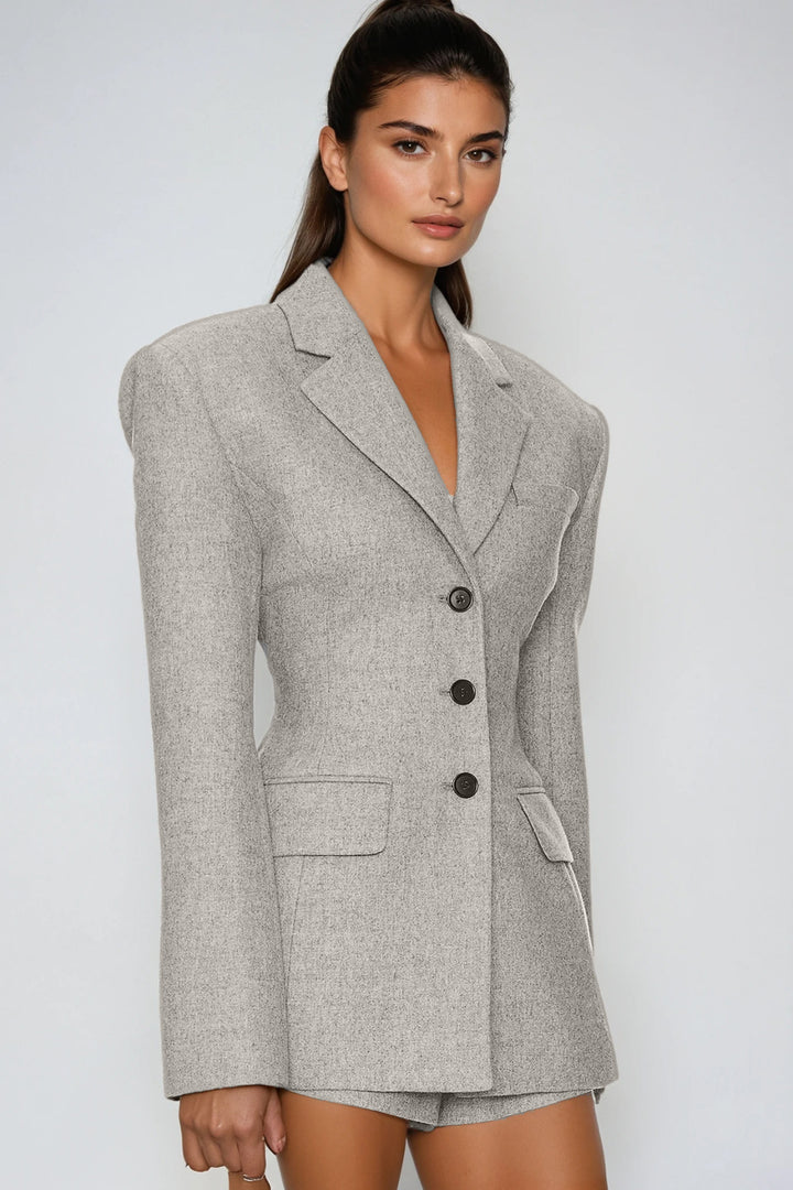 The Delaney Lapel Blazer in Slight Grey offers a refined, tailored fit crafted from high-quality fabric that ensures comfort and durability. Its subtle grey tone provides versatile styling options, making it ideal for both professional settings and sophisticated casual wear. Expertly constructed with a classic lapel and structured silhouette, this blazer elevates your wardrobe with timeless elegance and polish.