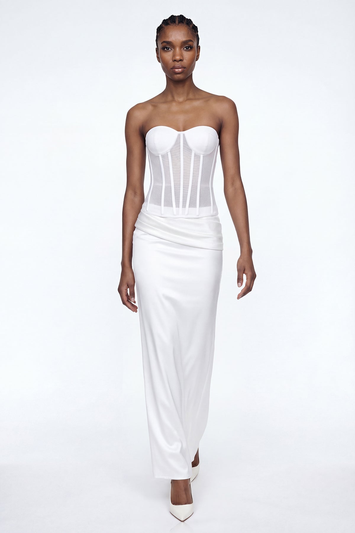 The Dimos Strapless Corset Maxi Dress combines architectural tailoring with timeless elegance. Featuring a structured corset bodice that provides support and definition, this floor-length silhouette delivers sophisticated drama for evening occasions. The strapless design showcases the shoulders while the fitted waist creates a flattering hourglass profile. Crafted for those seeking refined, statement-making pieces, this dress transitions seamlessly from formal events to upscale celebrations. A versatile investment that commands attention through impeccable construction and classic design.