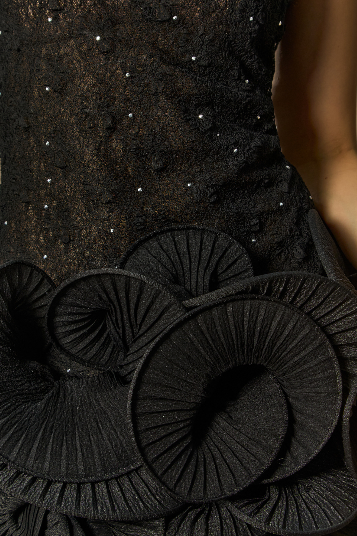 Elevate your evening look with the Dodie Spaghetti Rhinestone Ruffle Mini Dress, a sophisticated piece that seamlessly blends glamour with contemporary style. Delicate spaghetti straps provide an elegant silhouette, while cascading ruffles add movement and dimension. Shimmering rhinestone embellishments catch the light beautifully, creating an eye-catching statement perfect for special occasions, nights out, or upscale events. The mini length offers a modern, flattering cut that works for various body types. Crafted with attention to detail, this dress delivers premium aesthetics without compromising comfort, making it an essential addition to any fashion-forward wardrobe.