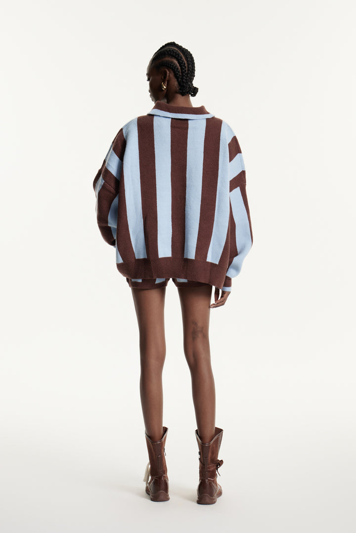 Edwena Stripe Knit Pants Set In Brown Elevate your casual wardrobe with this sophisticated two-piece knit ensemble. The Edwena set features a refined striped pattern in warm brown tones, combining a coordinated top and pants for effortless styling versatility. Crafted from quality knit fabric, this set delivers comfort without compromising on polish. The stripe detailing adds visual interest while maintaining a timeless aesthetic. Perfect for layering or wearing as a complete look, this set transitions seamlessly from weekend relaxation to elevated casual occasions. An investment piece that simplifies getting dressed while maintaining contemporary style standards.