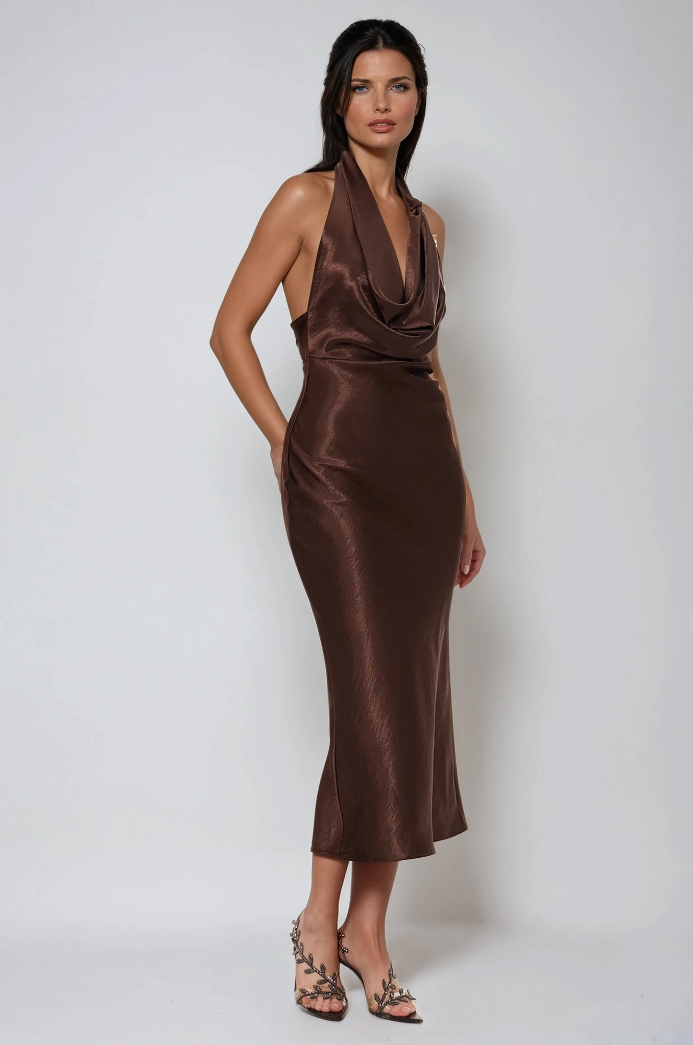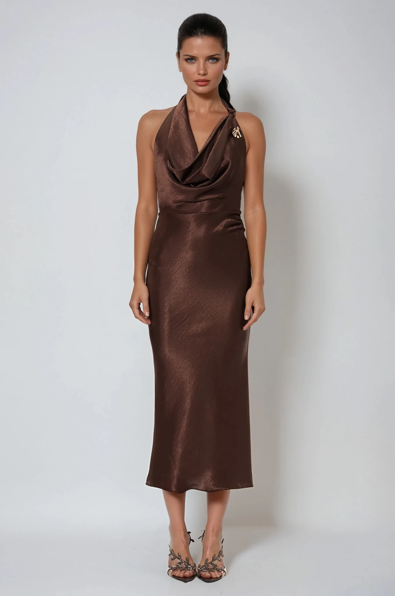 Eirlys Cowl Neck Satin Maxi Dress