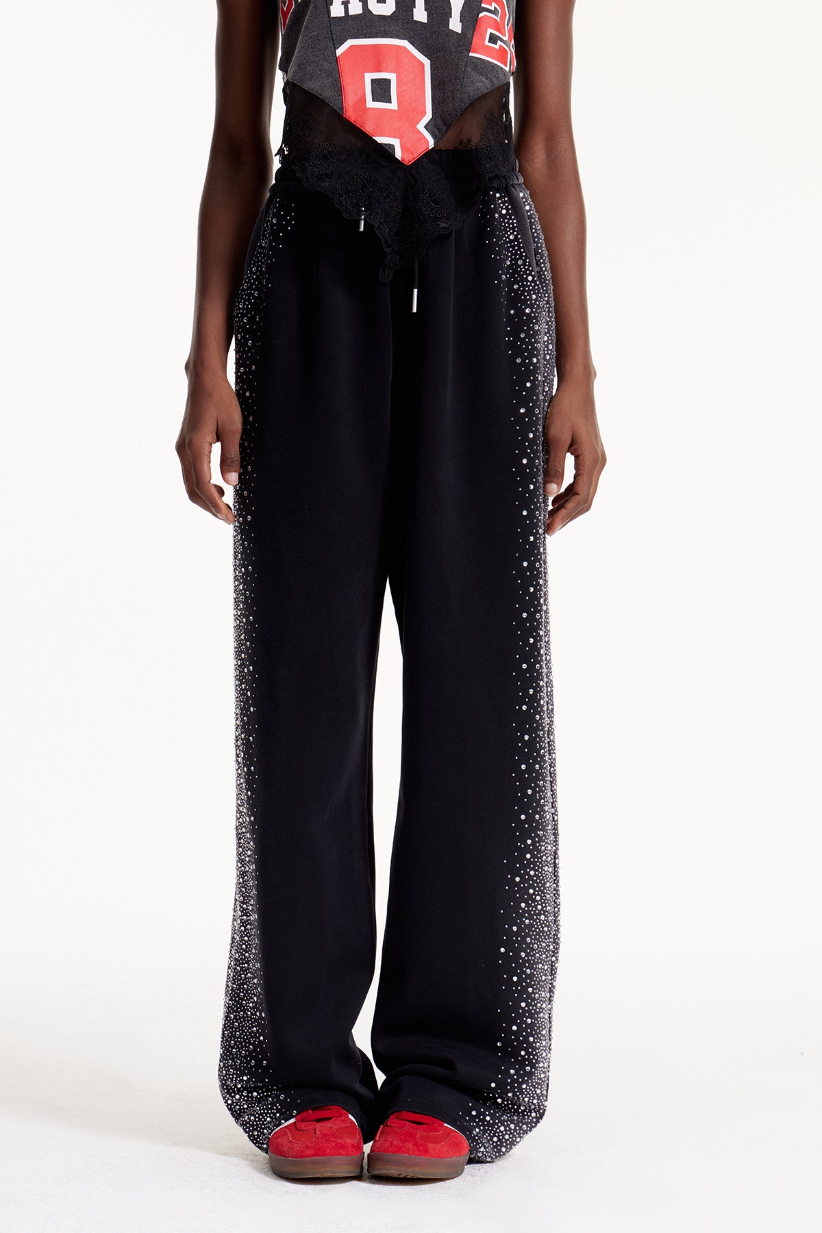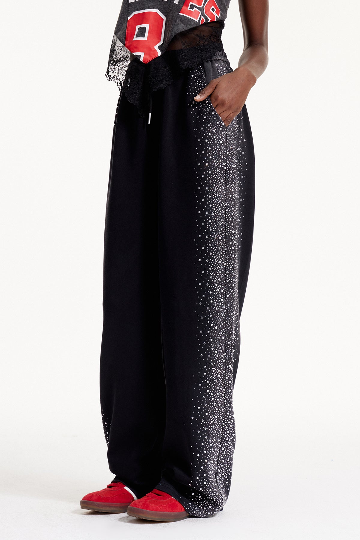 Elevate your wardrobe with the Elsy Rhinestone Hayley Pants, where contemporary design meets refined craftsmanship. These statement pants feature intricate rhinestone detailing that catches the light with every movement, creating an eye-catching silhouette perfect for elevated occasions or fashion-forward everyday wear. The Hayley cut offers a flattering fit that balances modern aesthetics with timeless elegance. Crafted with attention to detail, these pants deliver both visual impact and wearable sophistication for those who appreciate distinctive style.