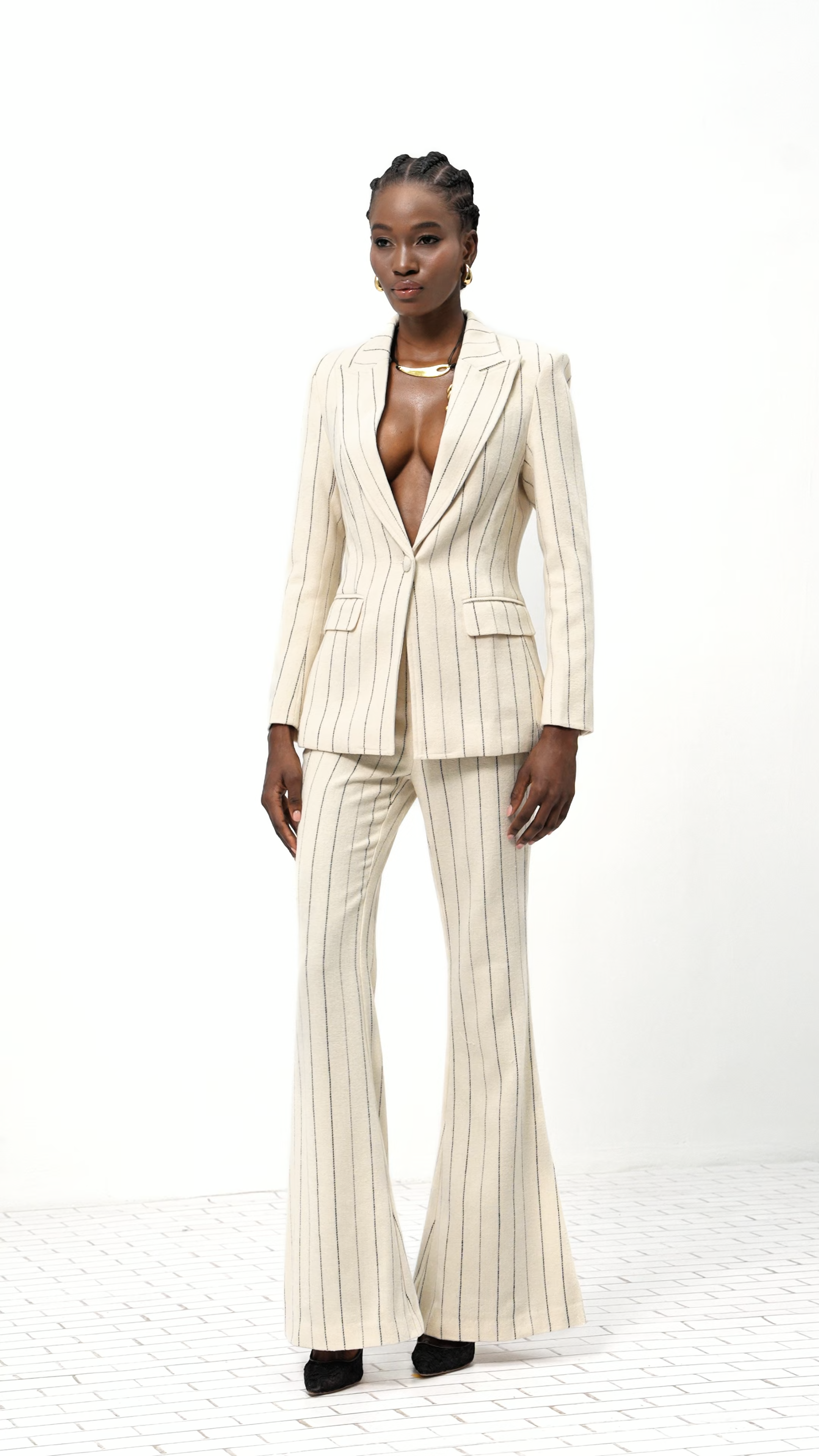 The Erkenaz Stripe Pants Set offers refined style with its tailored fit and modern striped design. Crafted for versatility and comfort, this set seamlessly transitions from professional settings to casual outings, ensuring a polished look for any occasion.