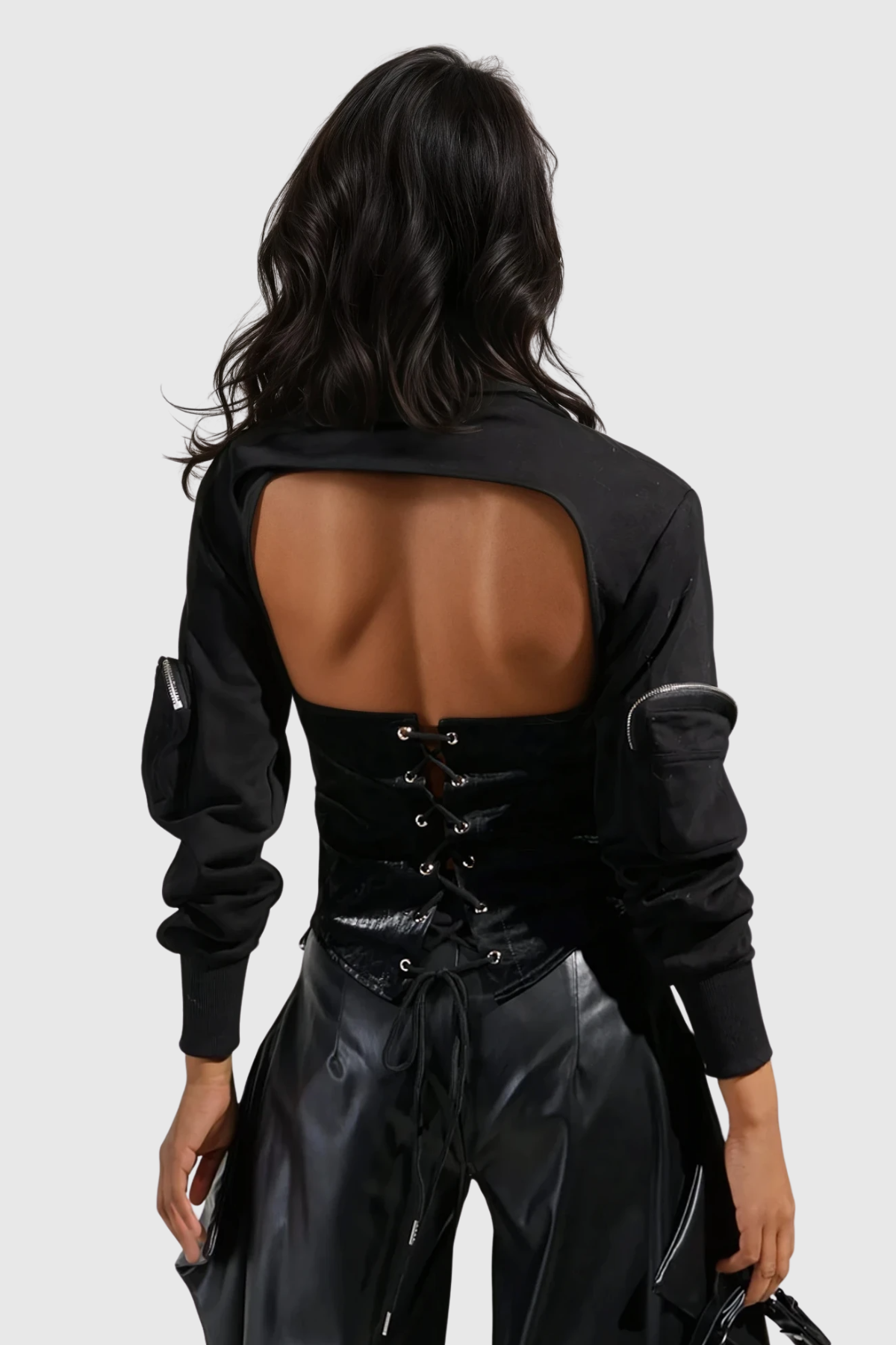 The Waverley Asymmetric Zipper Lace Up Top combines edgy design with refined tailoring. Featuring an asymmetric zipper closure and intricate lace-up detailing, this top offers a contemporary silhouette that enhances your wardrobe with a modern, structured look. Crafted for both style and comfort, it pairs seamlessly with various outfits, making it a versatile choice for fashion-forward individuals seeking a distinctive statement piece.