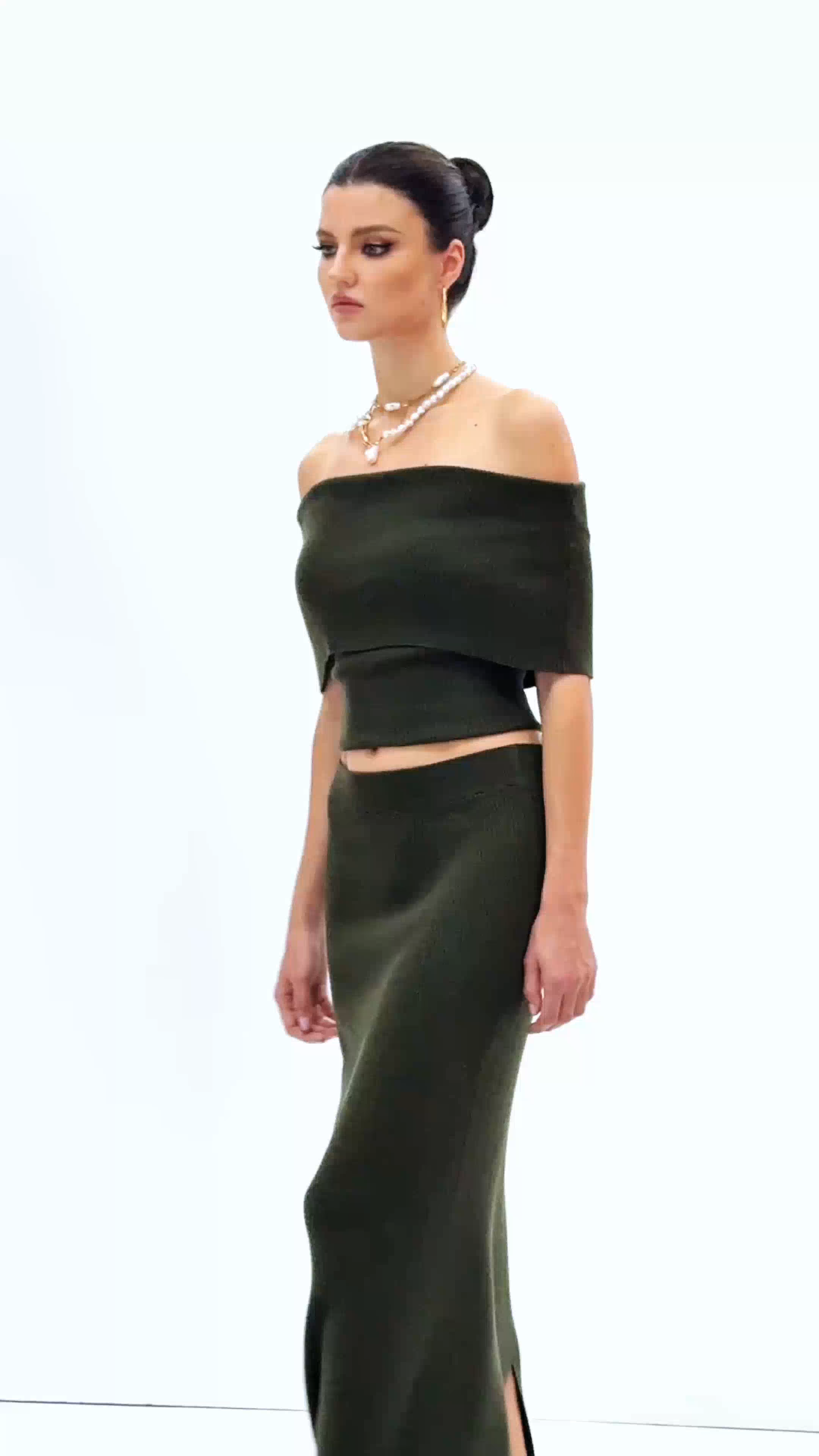 Aniston Strapless Ruch Split Knit Skirt Set In Green