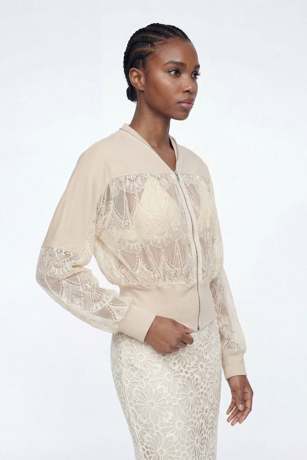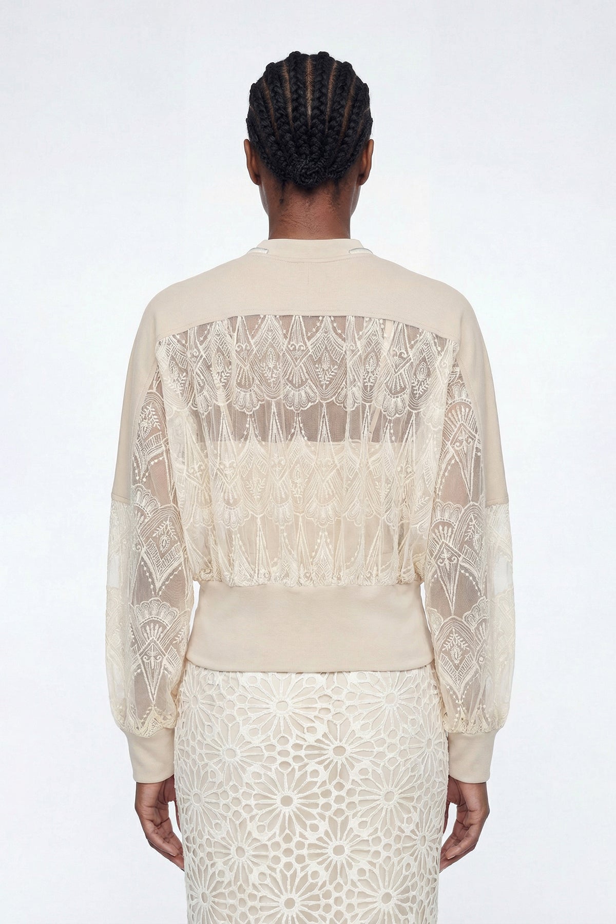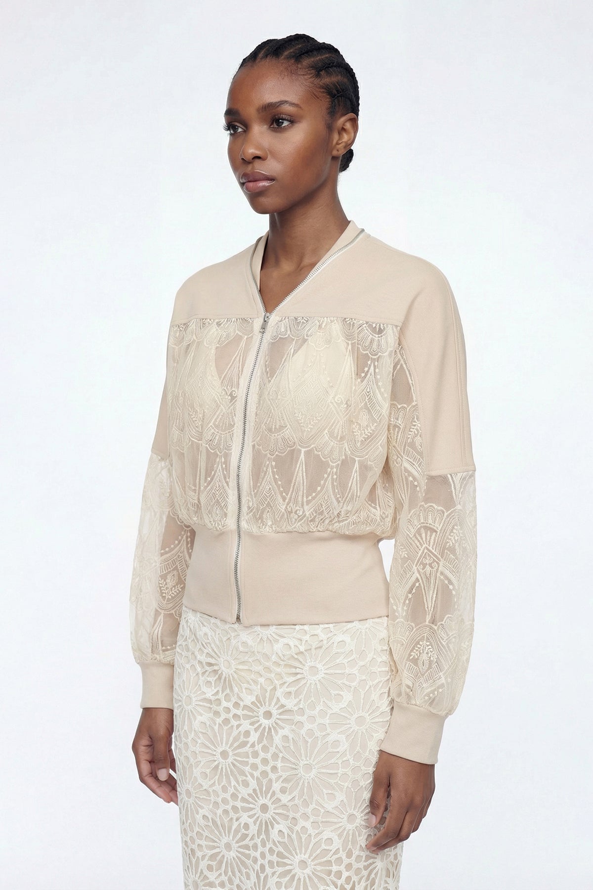 The Dharma Deconstruct Lace Jacket merges avant-garde design with refined craftsmanship. Featuring strategically deconstructed panels and intricate lace detailing, this piece challenges conventional tailoring while maintaining sophisticated structure. The layered construction creates visual depth and movement, making it an exceptional choice for those seeking statement-making outerwear that transcends seasonal trends. Perfect for elevating both casual and dressed-up ensembles with architectural elegance.