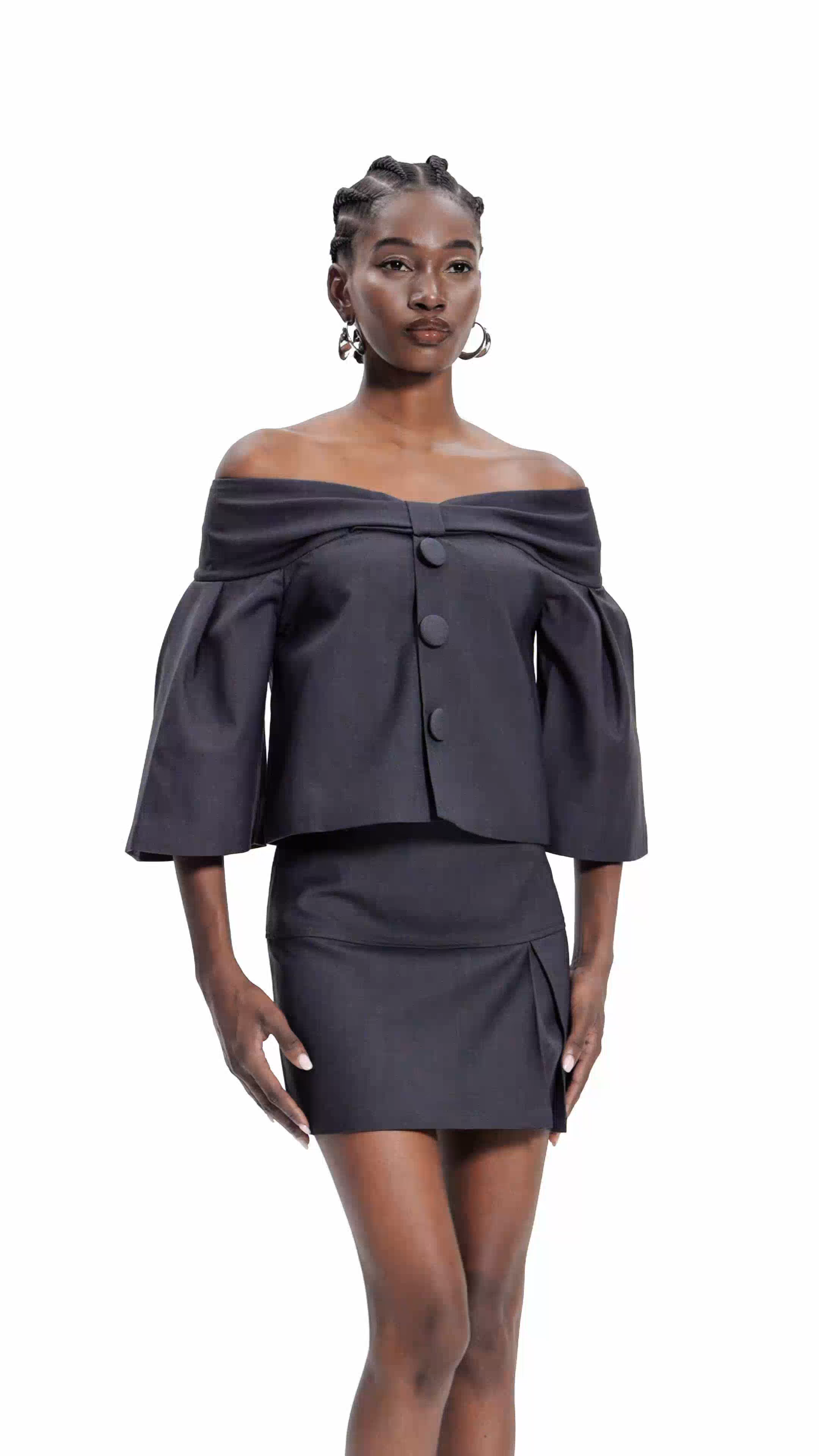 Elevate your wardrobe with the Eerikki Off Shoulder Bow Skirt Set, a sophisticated two-piece ensemble designed for the discerning dresser. The off-shoulder silhouette creates an elegant, contemporary look while the signature bow detail adds refined femininity. Crafted with precision tailoring, this set transitions seamlessly from daytime occasions to evening events. The coordinated skirt complements the top perfectly, offering a polished aesthetic that requires minimal styling effort. Ideal for those who appreciate quality construction and timeless design elements.