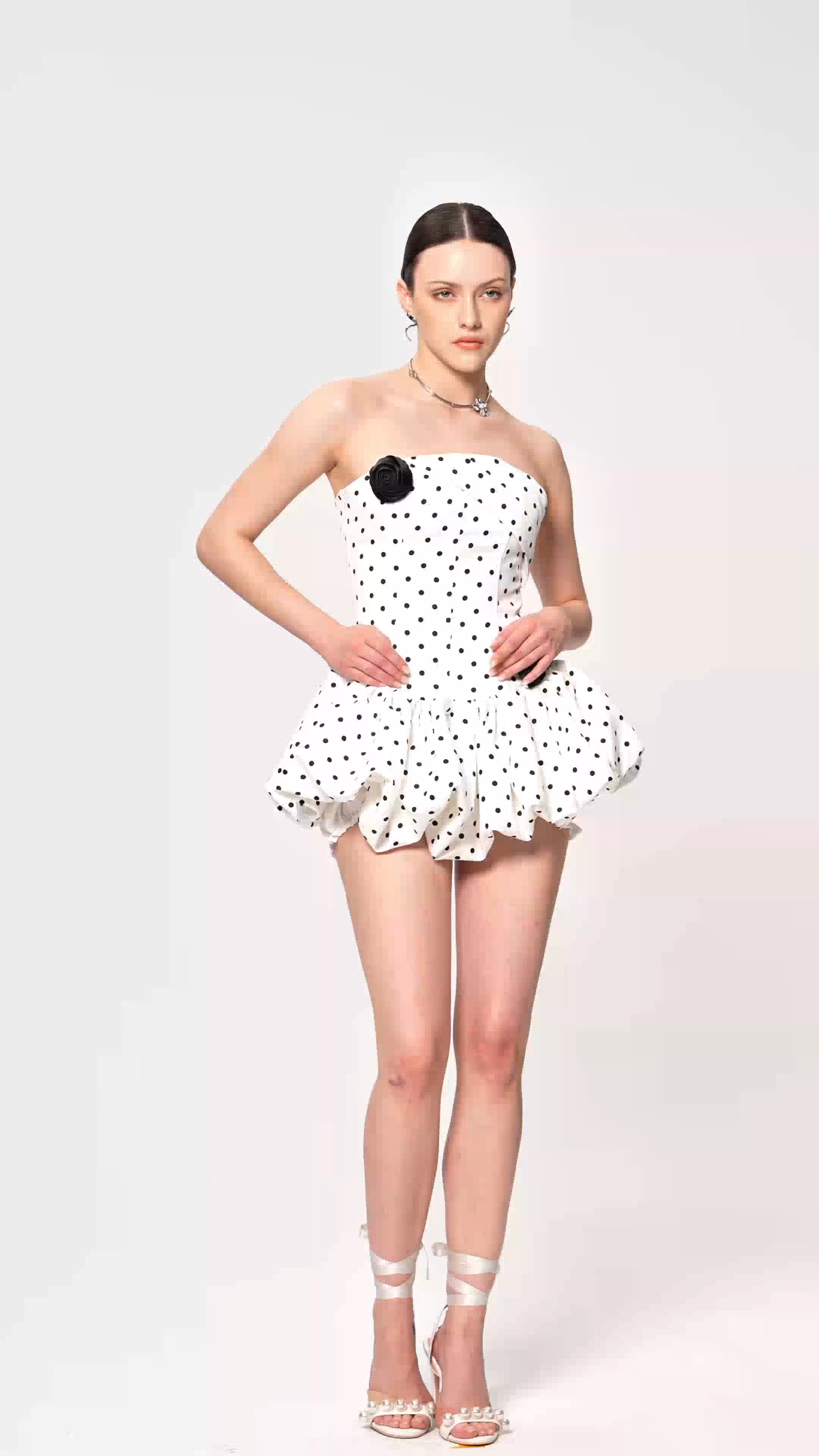 Eilonwy Flower Dot Bubble Mini Dress This charming mini dress features a delicate flower dot pattern that brings effortless elegance to your wardrobe. The bubble hem silhouette creates a playful, dimensional shape that flatters the figure while maintaining a refined aesthetic. Crafted with attention to detail, this piece transitions seamlessly from casual daytime wear to evening occasions. The mini length offers versatility for layering or styling with your favorite accessories. Perfect for those seeking a dress that balances whimsy with sophistication, the Eilonwy delivers both style and wearability in one thoughtfully designed piece.