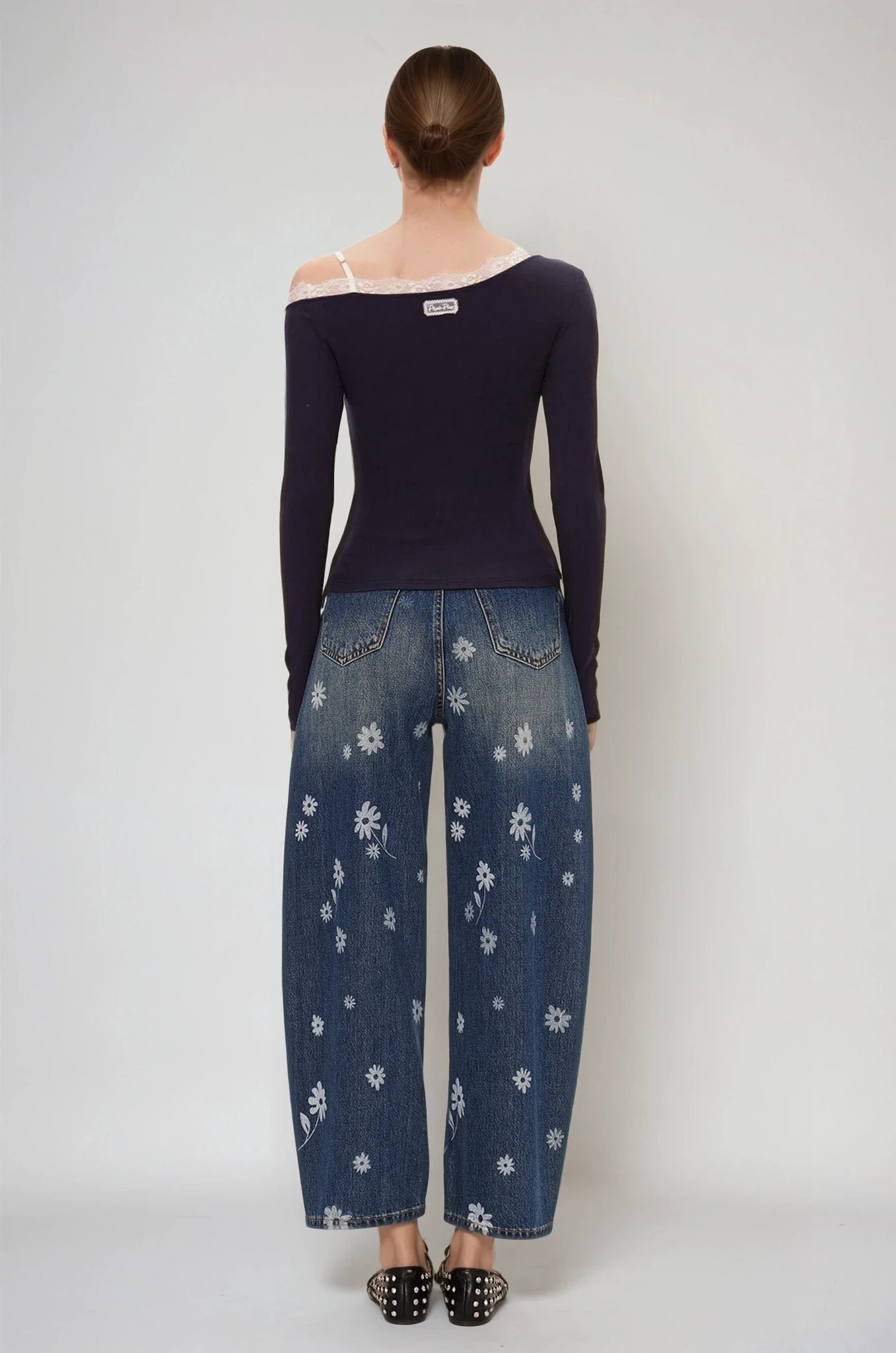 Elevate your evening wardrobe with this sophisticated one-shoulder lace top in classic black. The delicate lace fabrication creates an elegant, refined aesthetic while the asymmetrical neckline adds contemporary flair and visual interest. The single-shoulder silhouette flatters various body types and transitions seamlessly from cocktail events to upscale dinners. Crafted for those who appreciate timeless design with modern sensibility, this piece pairs effortlessly with tailored trousers, sleek skirts, or denim for versatile styling options. A wardrobe essential that combines understated luxury with wearable sophistication.