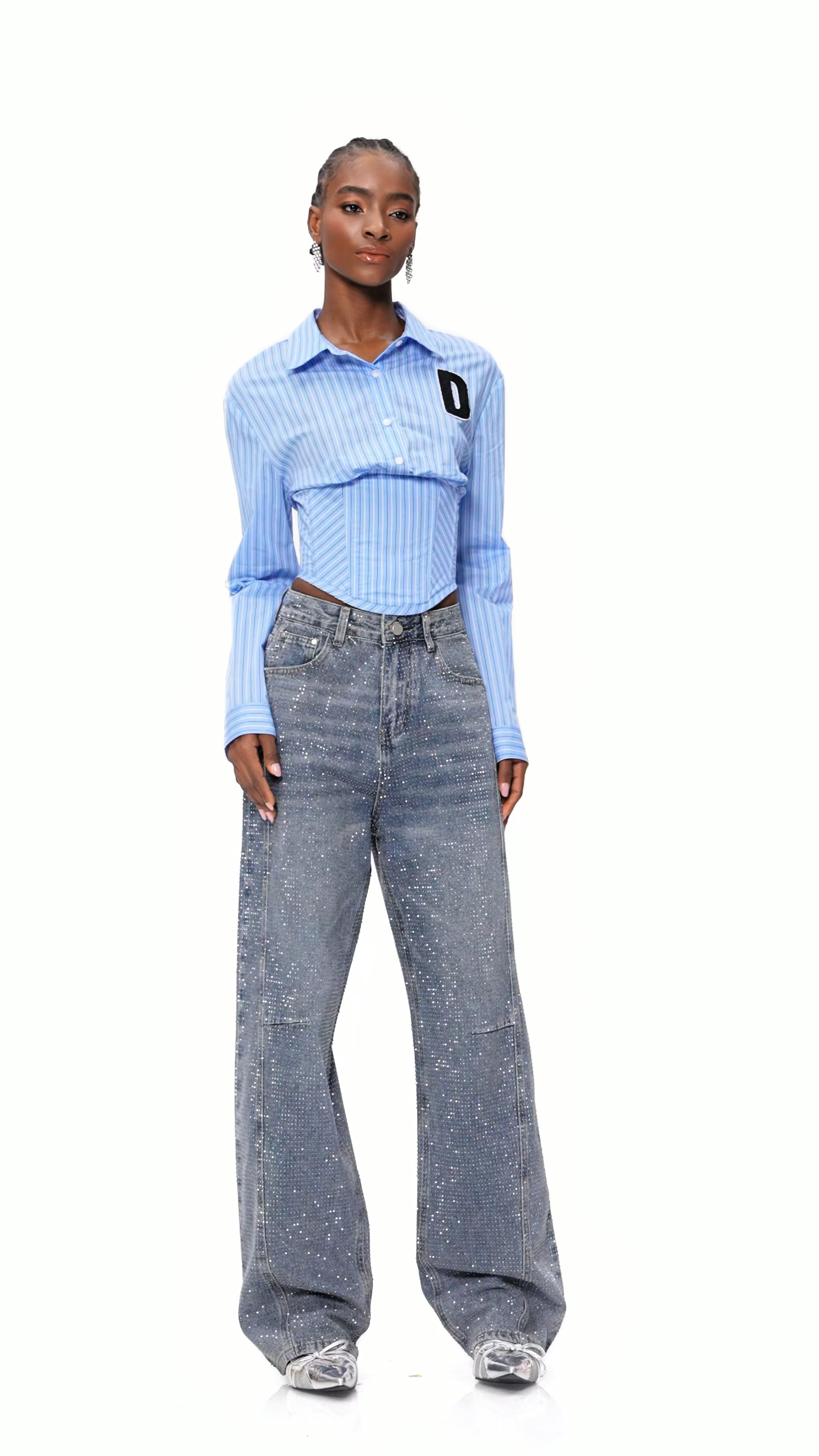 Elevate your style with Eliam Rhinestone Jeans in Blue. Crafted for a refined fit, these jeans feature elegant rhinestone detailing that adds a touch of sophistication to any outfit, making them perfect for both casual and evening occasions.
