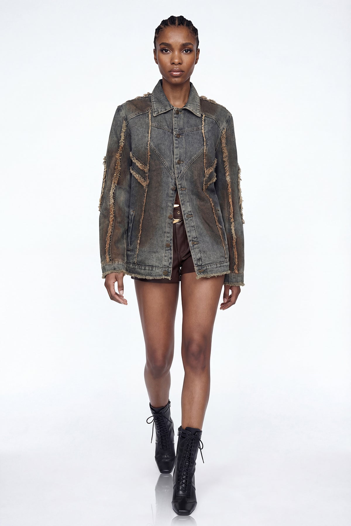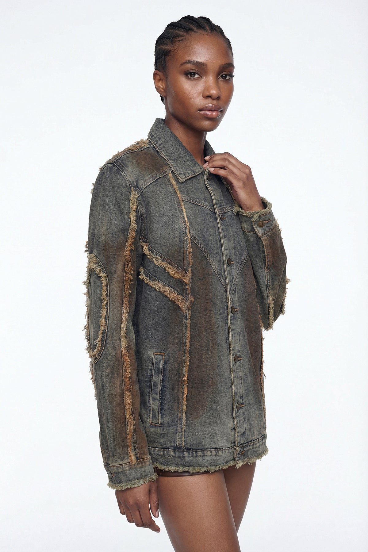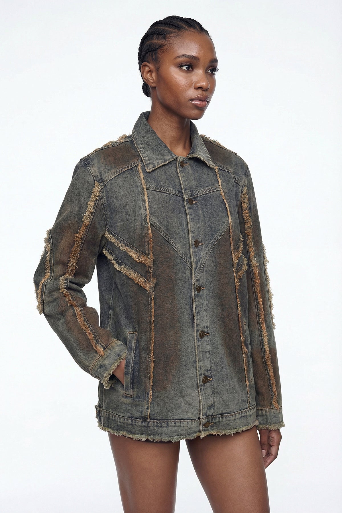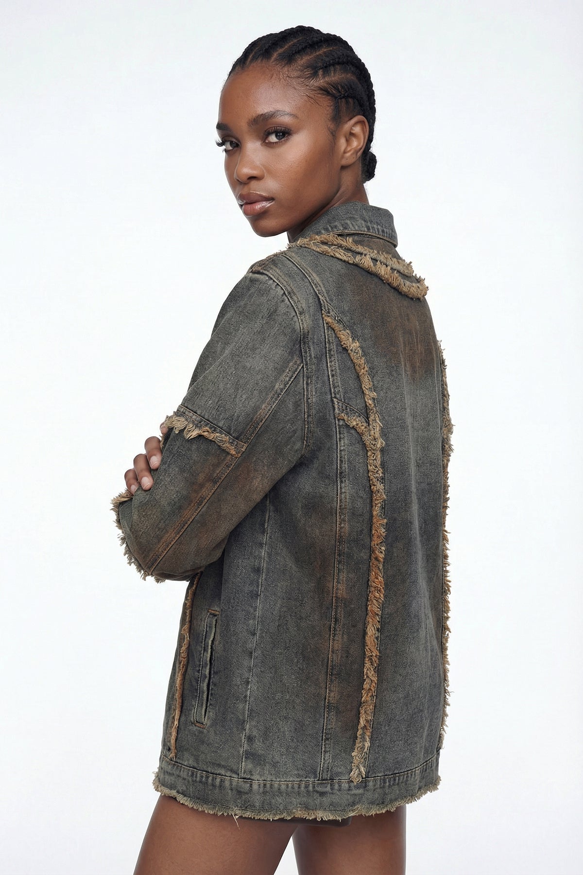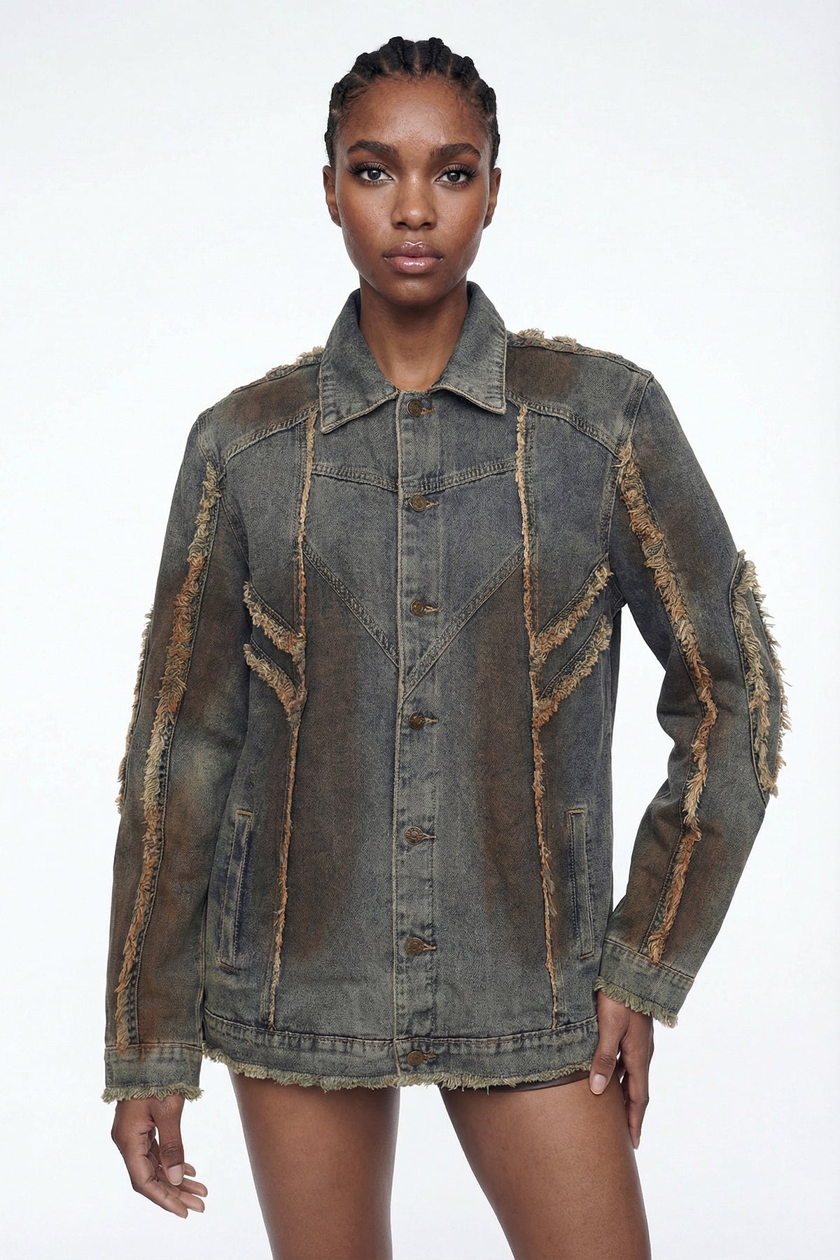 The Elise Fringe Deconstruct Denim Jacket merges contemporary design with timeless denim craftsmanship. Featuring strategically deconstructed seams and playful fringe detailing, this jacket delivers an intentionally undone aesthetic that elevates casual wardrobes. The relaxed silhouette provides versatile layering, while raw edges and exposed stitching showcase deliberate construction techniques. Perfect for those seeking statement pieces that balance edge with wearability, this jacket transitions seamlessly from day to evening styling.