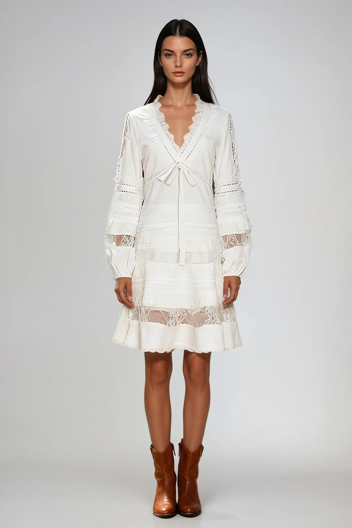 Elkanah Cowl Neck Lace Ruch Mini Dress