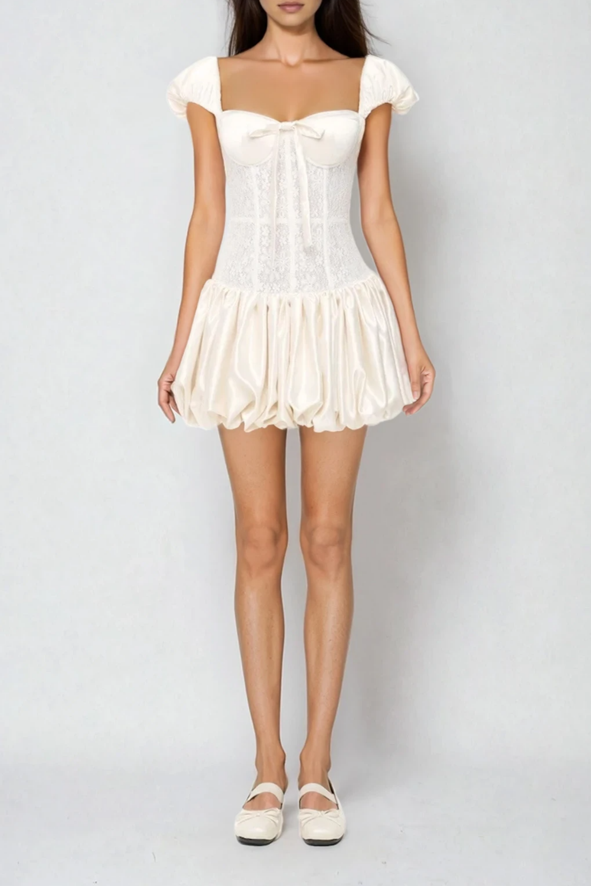 Edmond Lace Sequin Puffy Mini Dress In Apricot