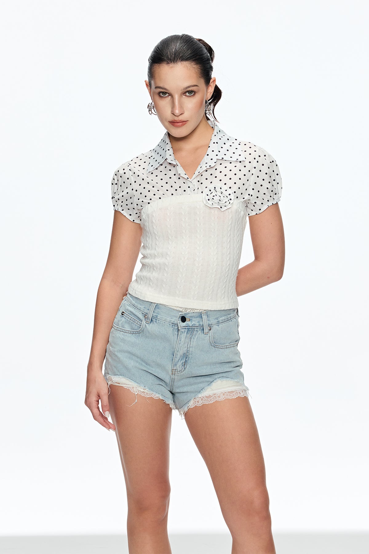 Cainan Dot Knit Flower Top