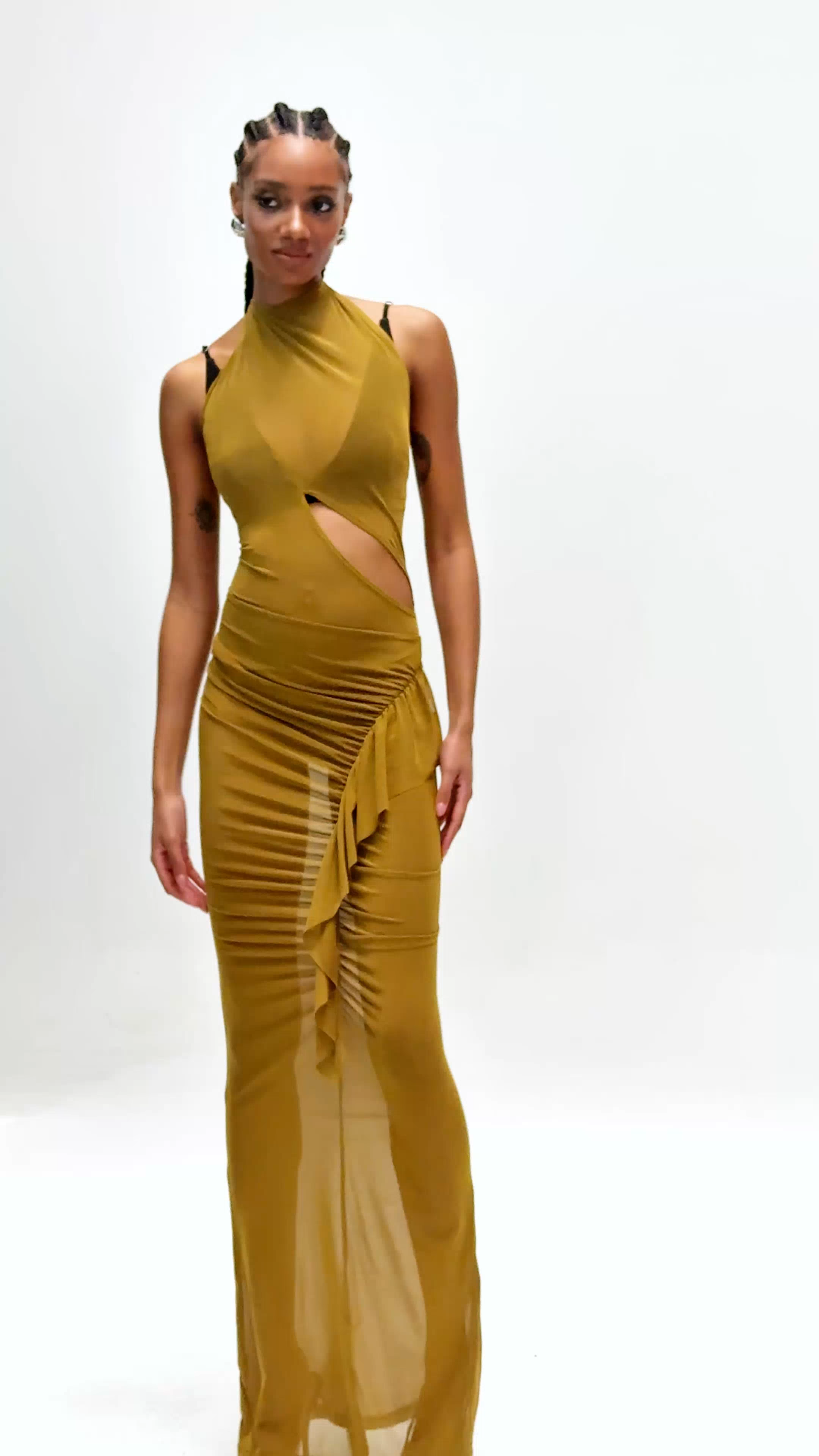 Featuring a unique and striking design, the Beonica Mesh Ruch Asymmetric Cutout Maxi Dress is guaranteed to turn heads. Made with high-quality materials, this dress offers comfort and style. The mesh fabric and ruched details add a touch of elegance, while the asymmetric cutout adds a modern twist. Perfect for any special occasion, this dress is a must-have for any fashion-forward individual.