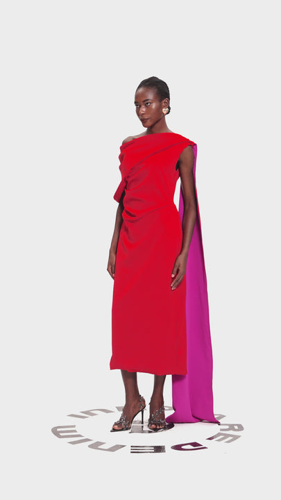Candidus Shawl Ruch Asymmetric Midi Dress
