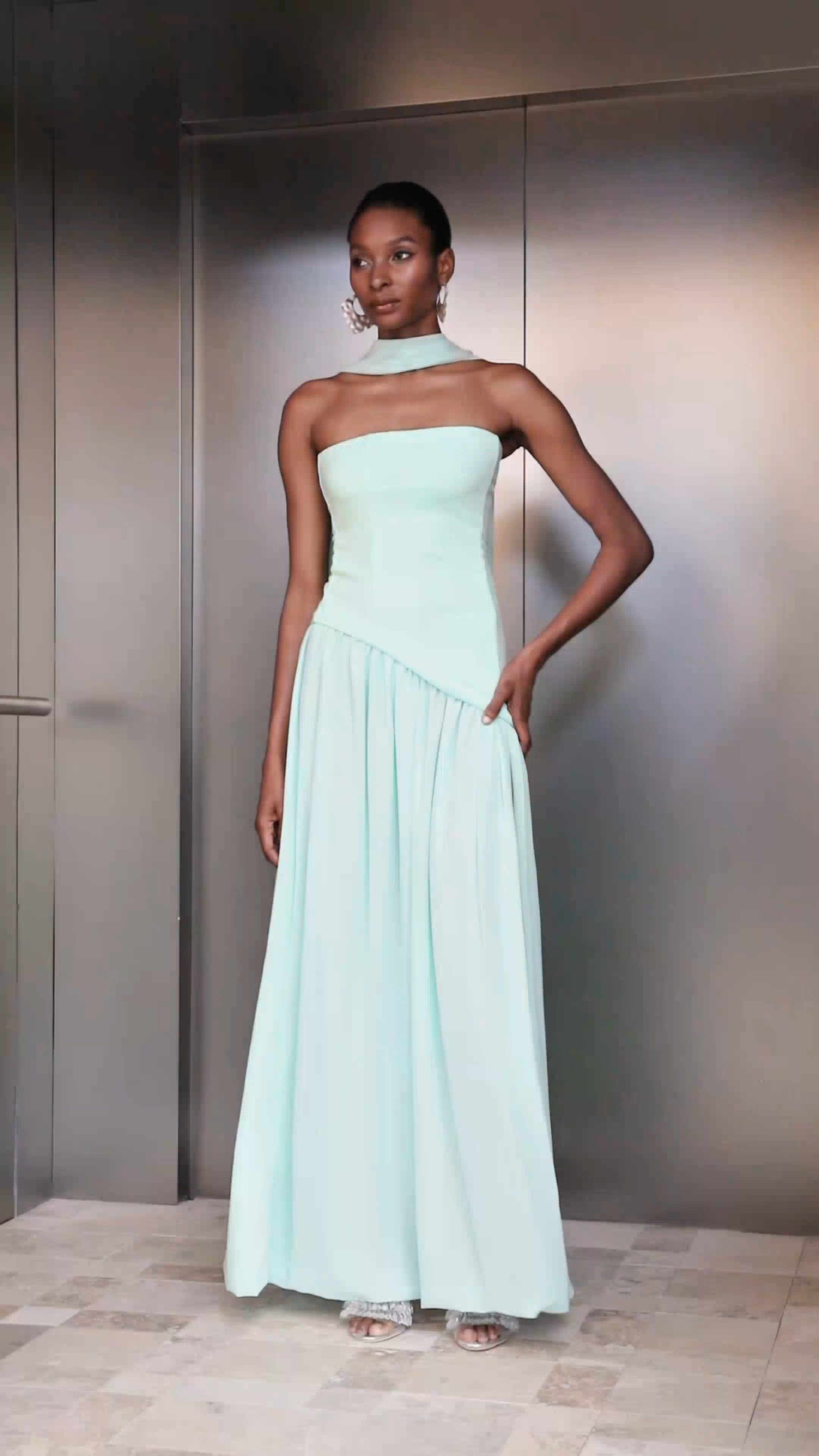 Cathaoir Ruffle Asymmetric Split Maxi Dress In Green