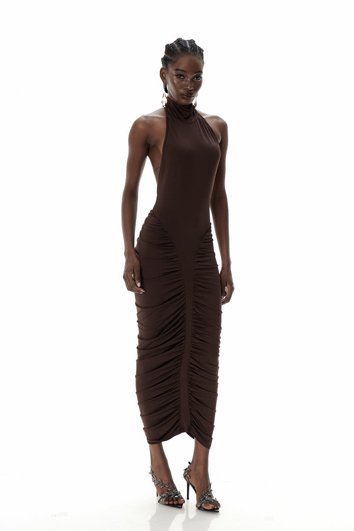 The Cristiana Drawstring Ruch Midi Dress offers a sophisticated silhouette with its adjustable drawstring waist and elegant ruching detail. Crafted for a flattering fit, this midi-length dress enhances your natural shape while providing comfortable wear throughout the day. Ideal for both casual and semi-formal occasions, it combines timeless style with subtle design elements that elevate your wardrobe essentials.