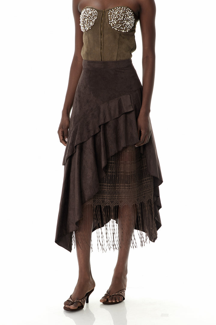 Cruz Suede Ruffle Lace Maxi Skirt