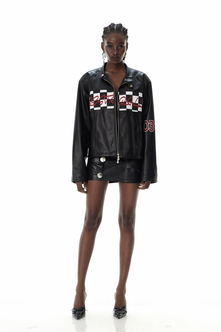 Custodio Grid Print Leather Jacket