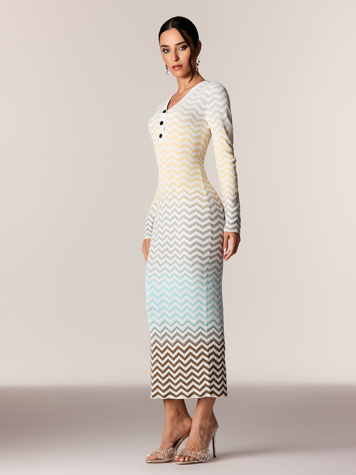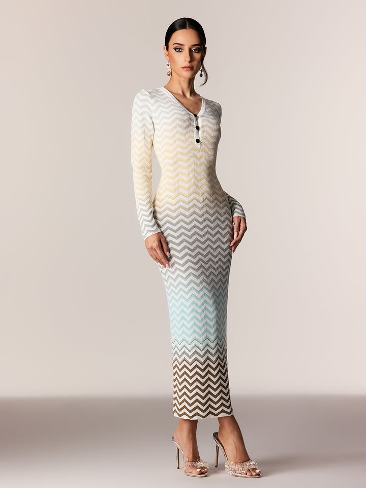 Daouda Long Sleeve Hayley Maxi Dress In Blue