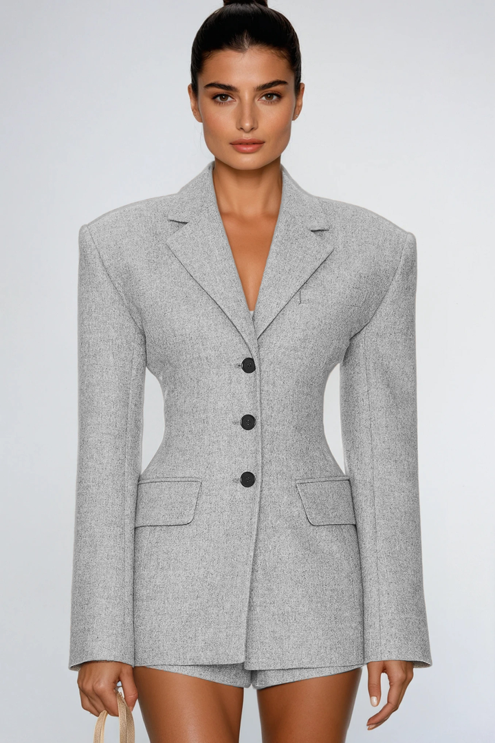 The Delaney Lapel Blazer in Slight Grey offers a refined, tailored fit crafted from high-quality fabric that ensures comfort and durability. Its subtle grey tone provides versatile styling options, making it ideal for both professional settings and sophisticated casual wear. Expertly constructed with a classic lapel and structured silhouette, this blazer elevates your wardrobe with timeless elegance and polish.