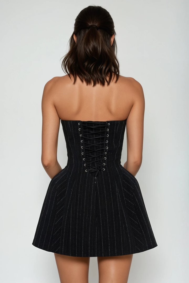 The Demophon Strapless Stripe Mini Dress offers a sleek, modern silhouette with its strapless design and bold stripe pattern. Crafted to enhance your figure, this mini dress combines a flattering fit with a contemporary edge, making it ideal for upscale events or stylish evenings out. Its clean lines and structured form ensure both comfort and confidence, elevating your wardrobe with a versatile piece that stands out effortlessly.