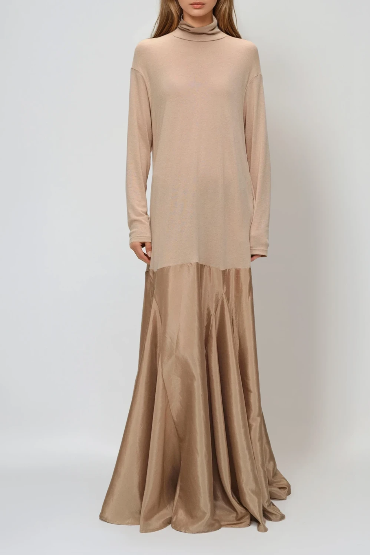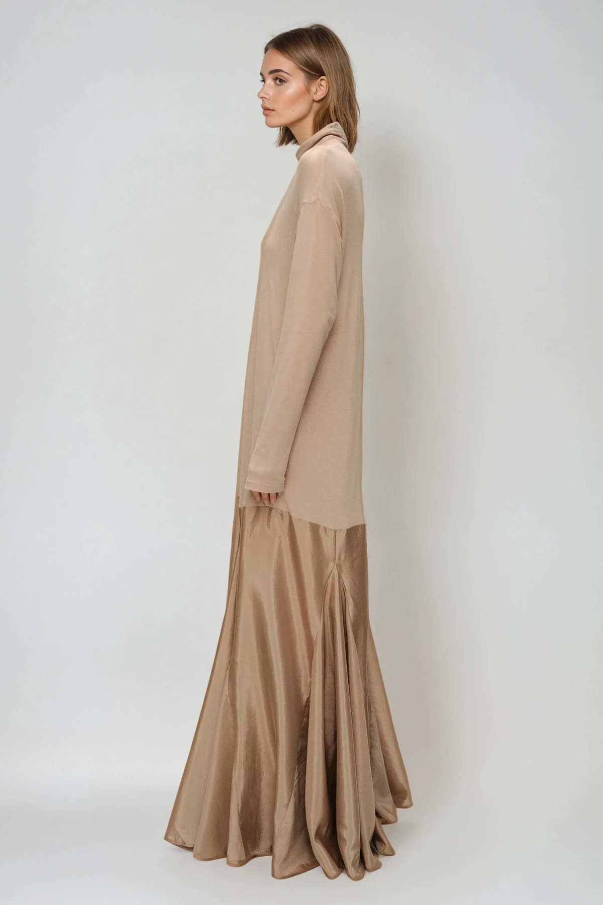 The Dilnoza Deconstruct Flared Maxi Dress exemplifies contemporary design through its intentional asymmetrical construction and dramatic silhouette. Featuring strategically placed seams and layered panels, this piece deconstructs traditional dress architecture while maintaining refined elegance. The flowing maxi length and flared hem create graceful movement, making it equally suited for evening events or sophisticated casual wear. Crafted with precision tailoring, the deconstructed elements add visual depth and dimension, positioning this dress as a statement piece for those who appreciate avant-garde fashion with wearable sophistication.