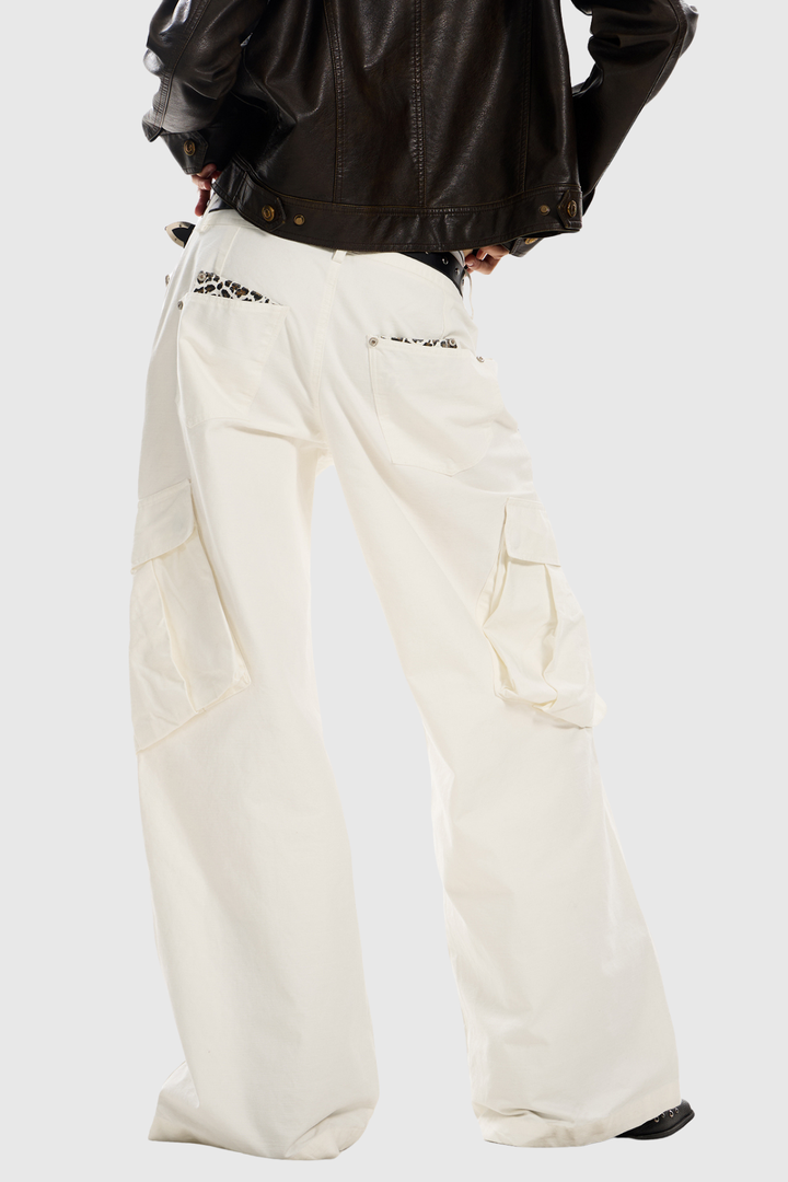 Diocletian Deconstruct Leopard Cargo Jeans In White