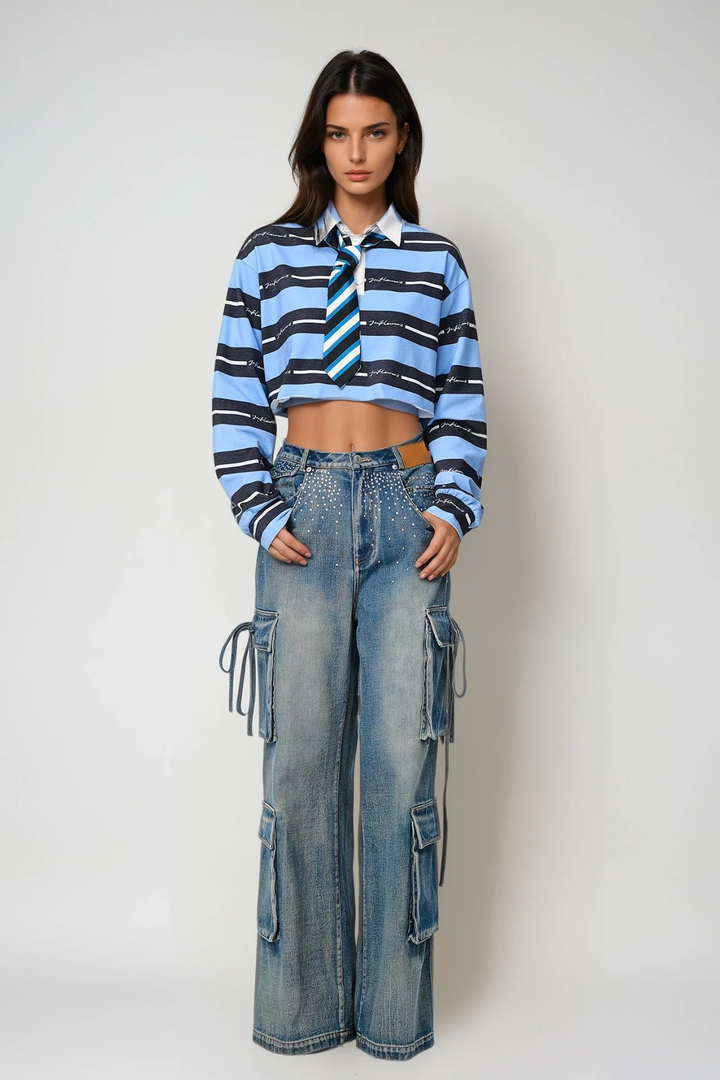 Dionysos Rhinestone Cargo Jeans combine utilitarian design with refined embellishment. Multi-pocket cargo construction delivers practical storage and movement, while strategically placed rhinestones elevate the silhouette with subtle glamour. The durable denim foundation ensures longevity through regular wear, making this piece versatile enough for both casual outings and styled occasions. A modern take on classic cargo functionality.