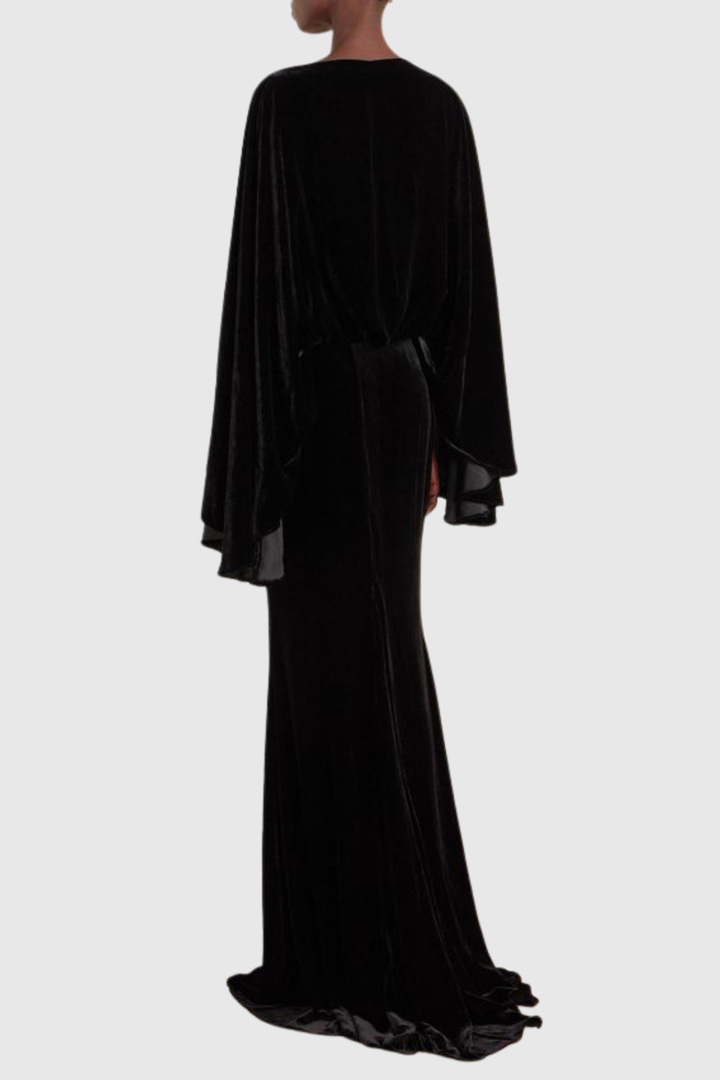 Dixon Cape Sleeve Velvet Maxi Dress In Black