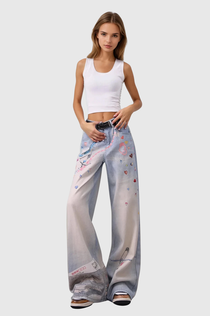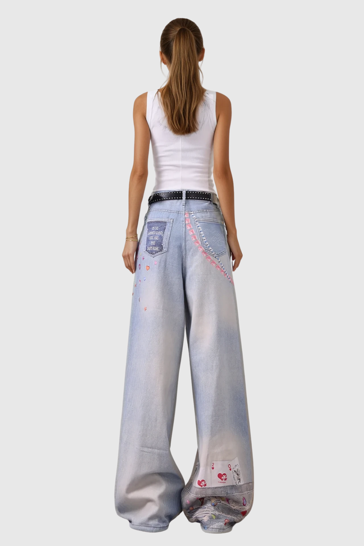 Dobrogost Heart Print Jeans combine timeless denim craftsmanship with contemporary design. These jeans feature a distinctive heart print that adds personality to your everyday wardrobe while maintaining the durability and comfort you expect from quality denim. The expert construction ensures a flattering fit that works across multiple occasions, from casual outings to styled ensembles. Perfect for those seeking to elevate their denim collection with a piece that balances classic appeal and modern flair.