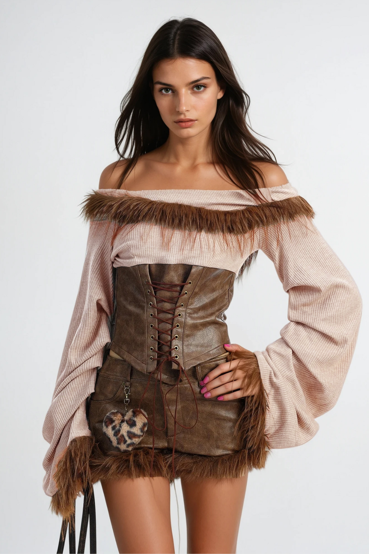 Dvora Deconstruct Lace Up Leather Top