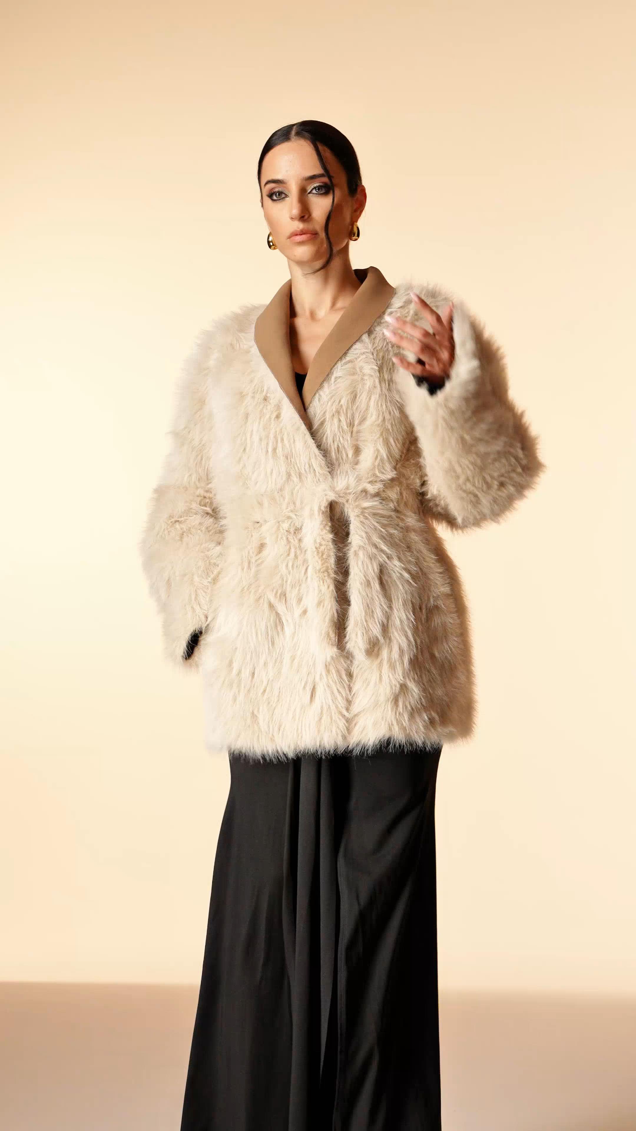 Edita Faux Fur Jacket Crafted from premium synthetic fur, the Edita jacket delivers luxurious warmth without compromise. Its structured silhouette flatters while the plush texture provides exceptional insulation for cold-weather wear. The jacket features secure closures and practical pockets, making it equally suited for evening occasions or casual outings. Versatile enough to layer over dresses or pair with tailored pieces, this piece elevates any winter wardrobe with timeless sophistication and modern comfort.