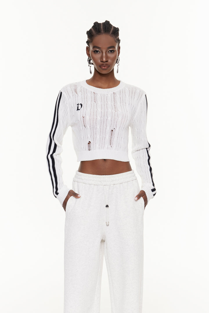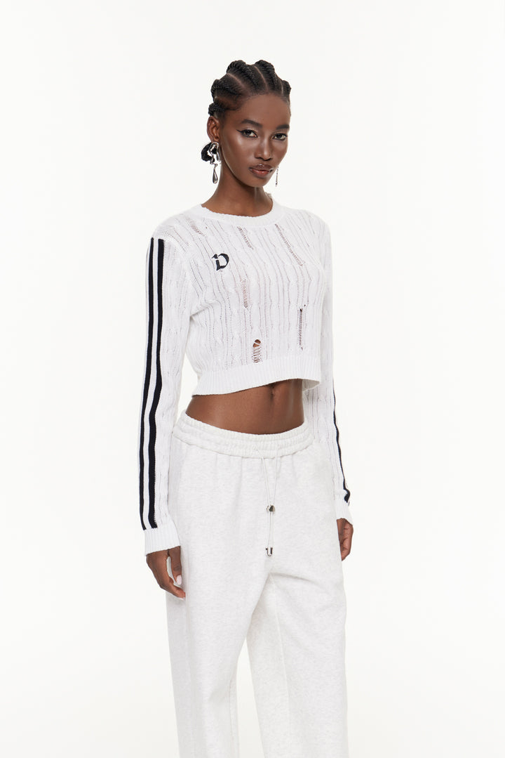 Efthimios Stripe Crop Knit Top Crafted from premium knit fabric, this striped crop top delivers contemporary style with refined construction. The balanced proportions of the cropped silhouette create a flattering, modern aesthetic suitable for layering or standalone wear. Vertical stripes add visual interest while maintaining a sophisticated appearance. The quality knit composition ensures comfortable wear throughout the day, with enough structure to maintain its shape. Perfect for styling with high-waisted bottoms or as part of a layered ensemble, this piece bridges casual and polished dressing with ease.