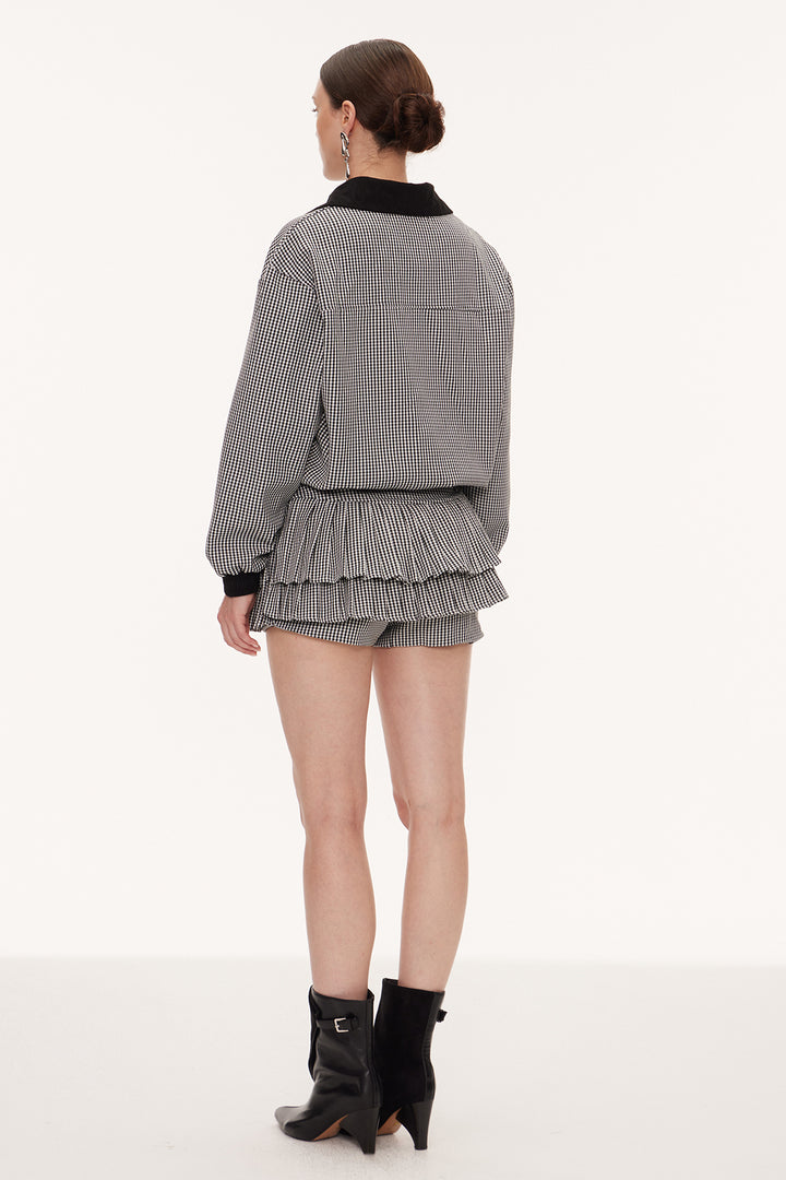 Eira Grid Pleated Skirt Set The Eira Grid Pleated Skirt Set combines architectural precision with refined elegance. Featuring a structured grid pattern and expertly executed pleats, this set delivers sophisticated layering for the discerning wardrobe. The pleated construction provides dimensional movement while maintaining a polished silhouette. Versatile enough for professional settings or elevated casual wear, the grid detailing adds visual interest without compromising wearability. A thoughtfully designed piece that demonstrates mastery of classic tailoring techniques.