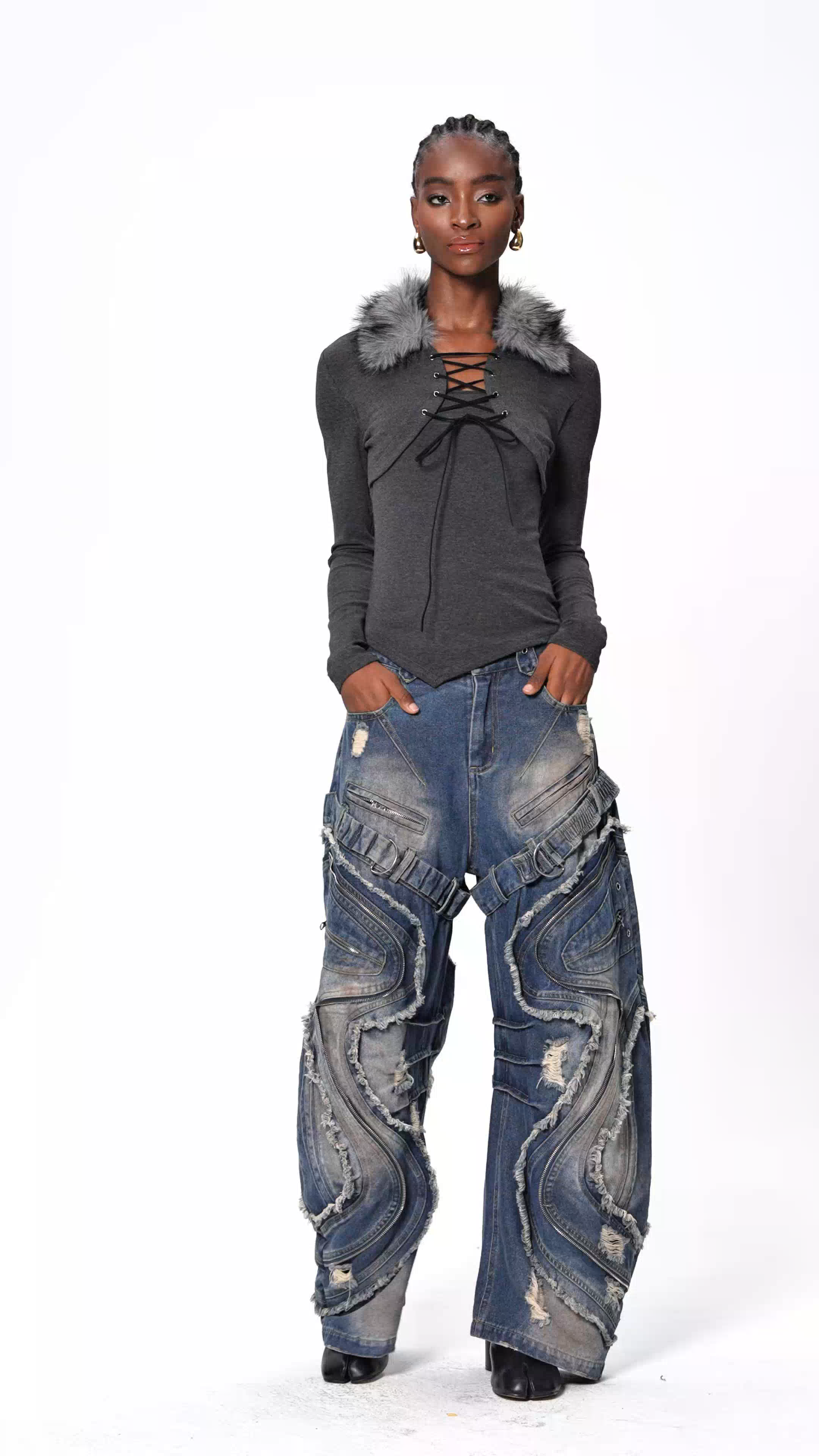 Elevate your winter wardrobe with the Eloise Faux Fur Lace Up Top in Grey. This sophisticated piece combines luxurious faux fur with a classic lace-up front, creating a striking silhouette that transitions seamlessly from casual to evening wear. The soft grey tone pairs effortlessly with denim or tailored pieces, while the textured faux fur adds dimension and visual interest. The adjustable lace-up closure allows for a customized fit, ensuring both comfort and flattering coverage. Perfect for layering or wearing as a statement piece, this top delivers contemporary style with timeless appeal.