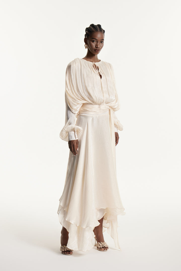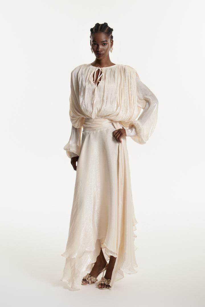 Aminah Balloon Sleeve Ruch Ruffle Maxi Dress