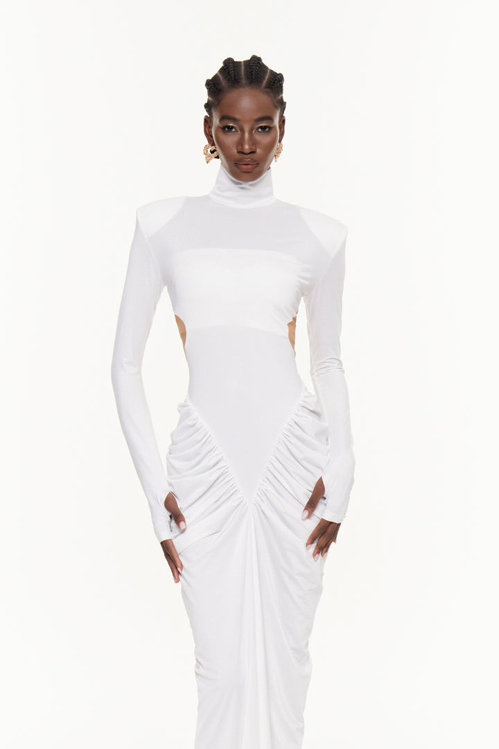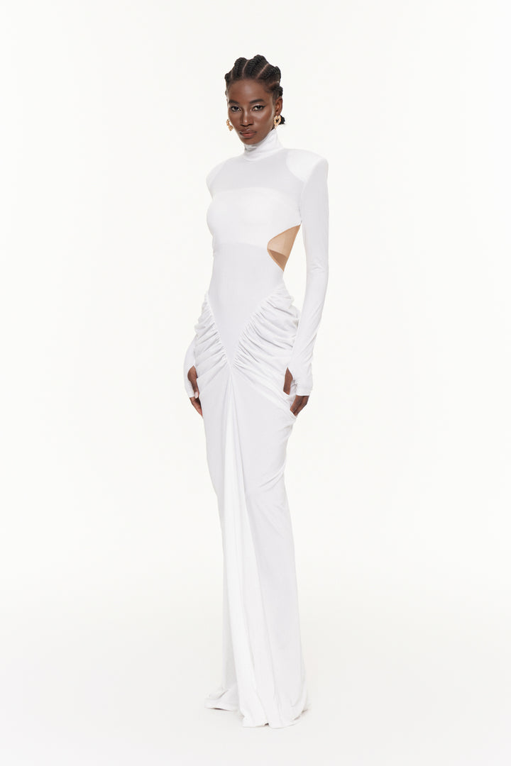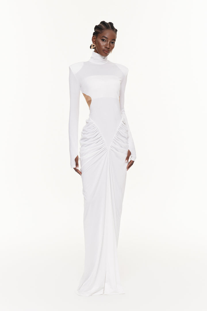 Cesarina Cutout Ruch Long Sleeve Maxi Dress