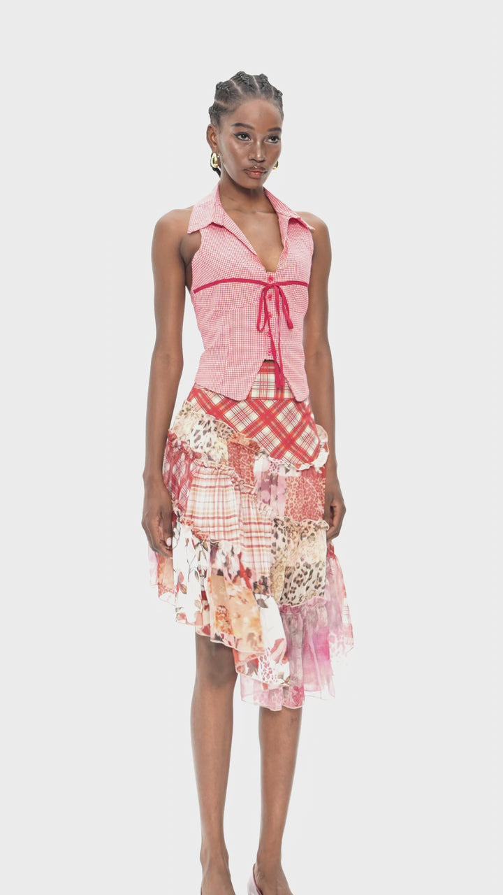 The Clemency Asymmetric Patchwork Maxi Skirt blends contemporary design with artisanal craftsmanship. Featuring an eye-catching asymmetric hem and carefully assembled patchwork panels, it offers a dynamic silhouette and subtle textural contrast. This maxi skirt moves gracefully and allows versatile styling, ideal for elevating any wardrobe with a sophisticated yet modern edge.