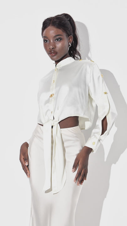The Eadric Deconstruct Tie Up Shirt in White offers a refined blend of modern design and versatile wearability. Expertly crafted with a deconstructed silhouette, this shirt features adjustable tie-up details that allow for a customizable fit and contemporary styling. Its crisp white fabric ensures a clean, polished look suitable for both professional settings and sophisticated casual occasions. Embrace a balance of structure and ease with this standout piece designed to elevate any wardrobe.