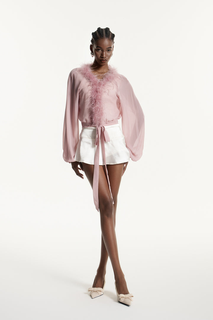 Eduardo Balloon Sleeve Faux Fur Top