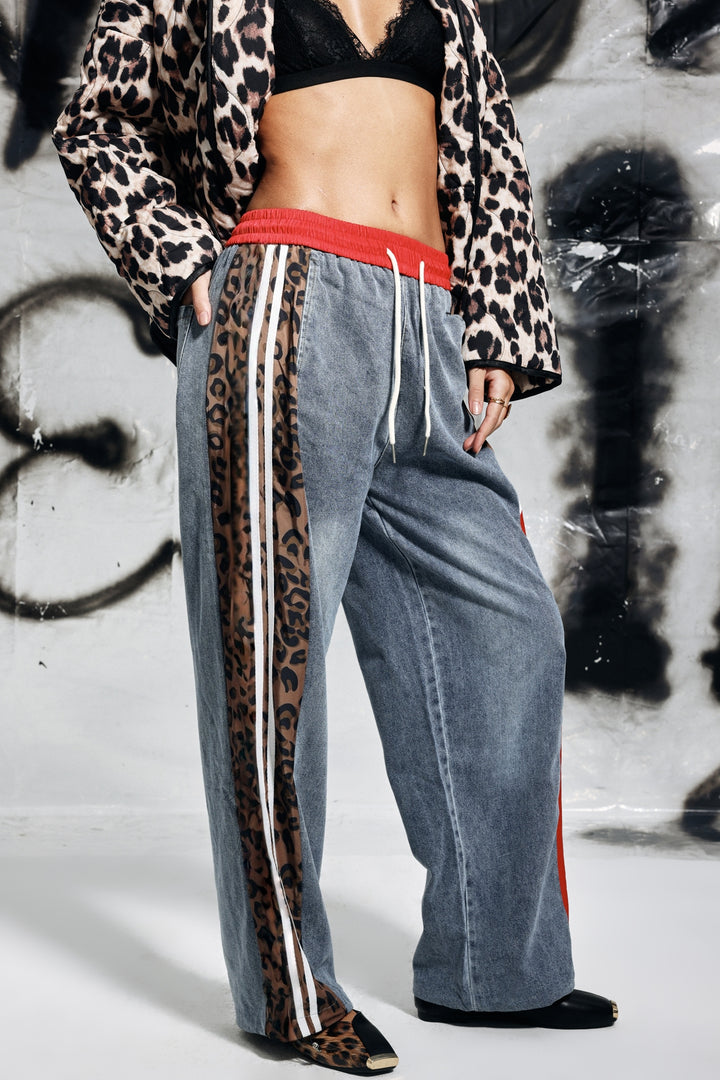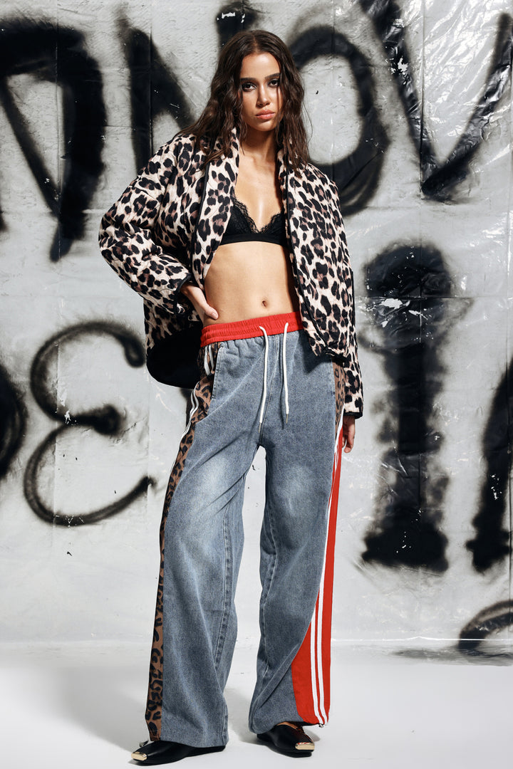 Expertly crafted with a unique deconstructed stripe pattern, the Erica Leopard Deconstruct Stripe Jeans provide a bold and stylish addition to any wardrobe. Made from high-quality materials, these jeans offer both comfort and durability. Elevate your fashion game with these statement-making jeans.
