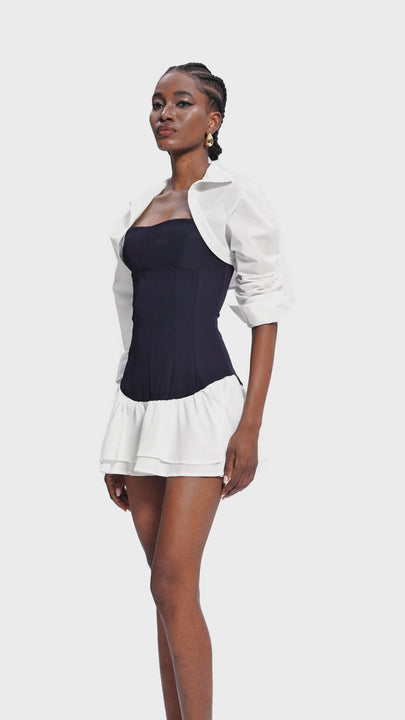 The Abilene Two Piece Ruffle Mini Dress combines contemporary silhouette with refined detailing. This versatile design features a coordinated two-piece construction with delicate ruffle accents that add movement and dimension. The mini length offers a modern, youthful aesthetic perfect for elevated casual occasions or evening events. Crafted with attention to proportion and construction, this dress delivers both style and wearability for the discerning customer seeking distinctive pieces that transcend seasonal trends.